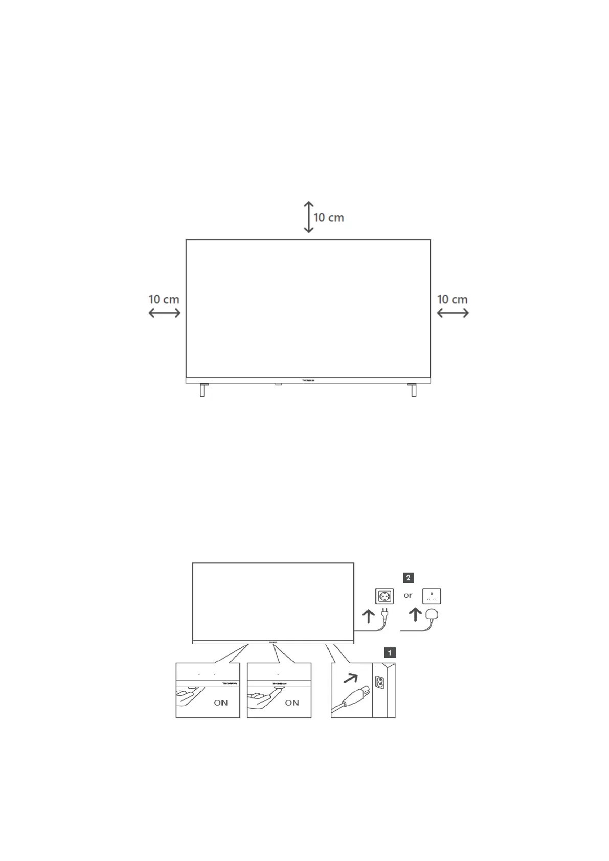2. Plug in the power cord of your TV (AC 100-240 V~ 50/60 Hz). The TV enters standby