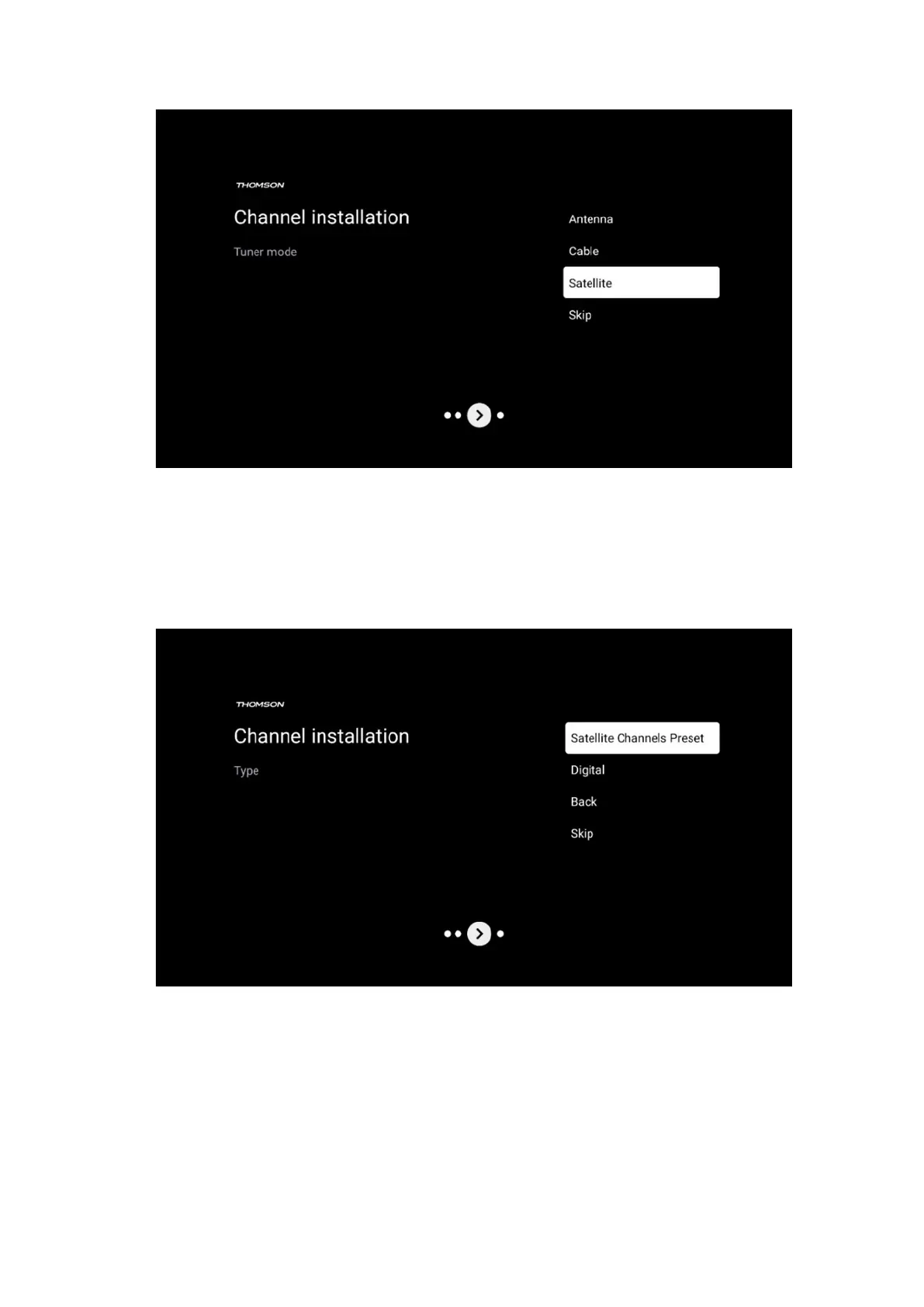 1. Tuner mode menu - select Satellite as the installation option.