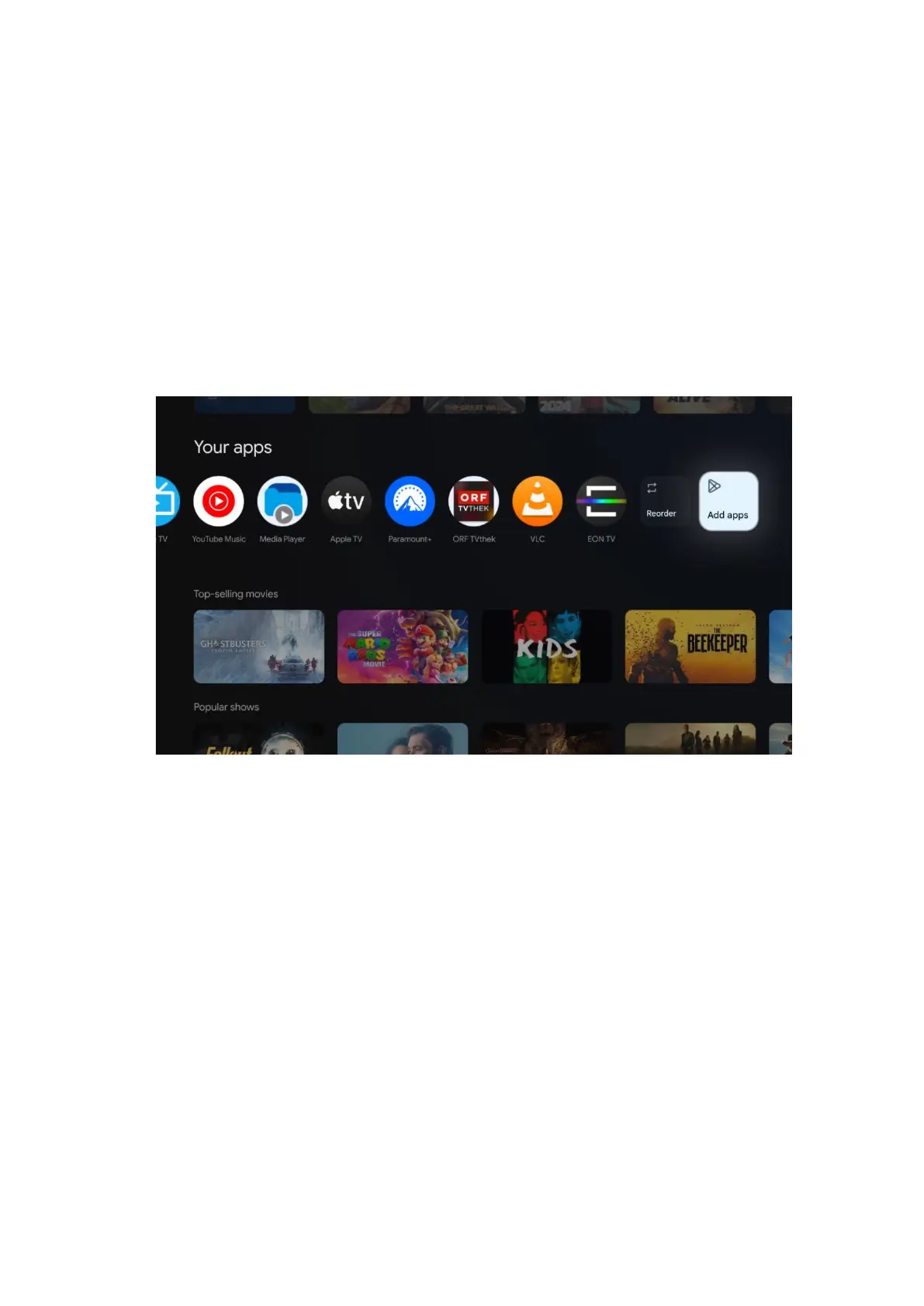 streaming services such as Netflix or YouTube as well as live TV and MMP (multimedia player)