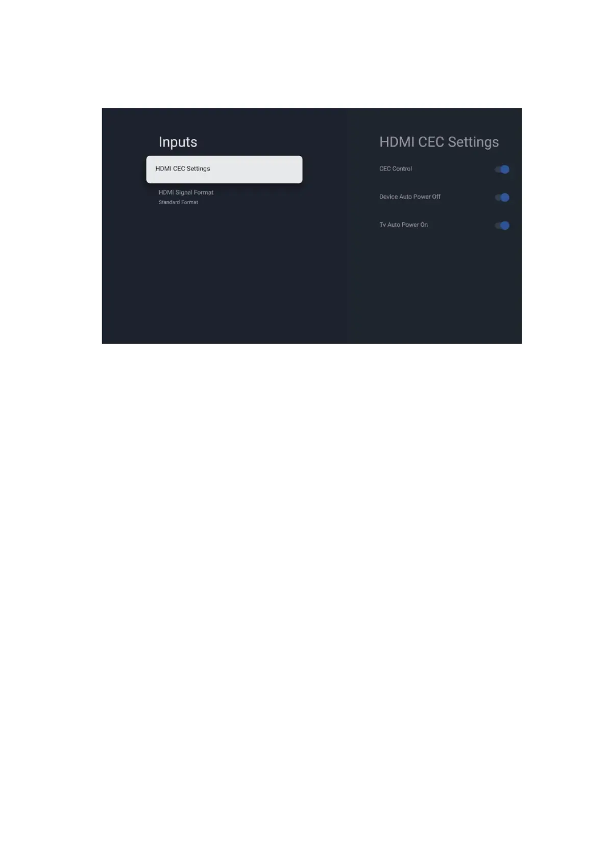 • Device Auto Power Off: When turning off the TV, the external HDMI device will be