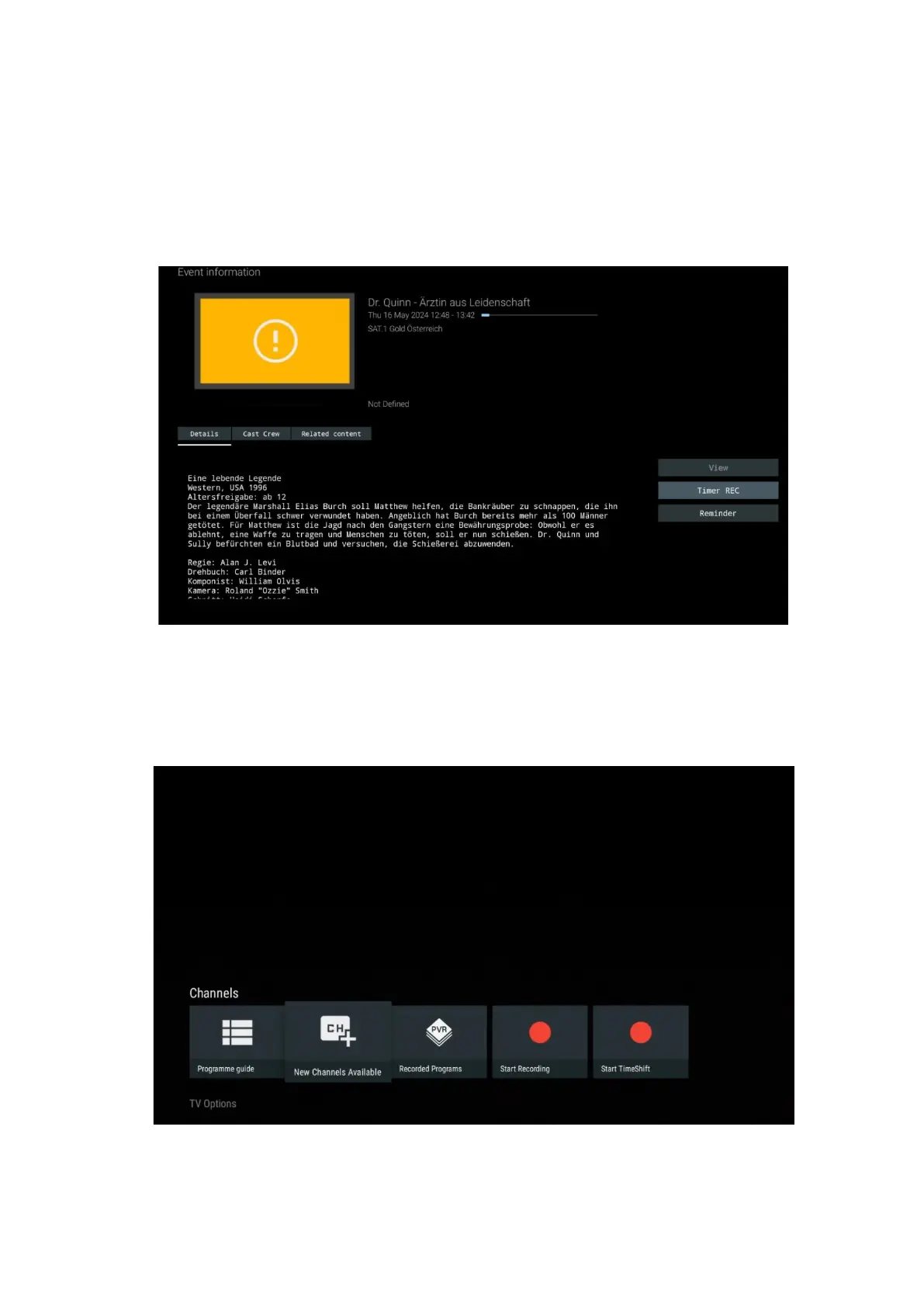 be displayed on the TV screen before the selected programme starts.