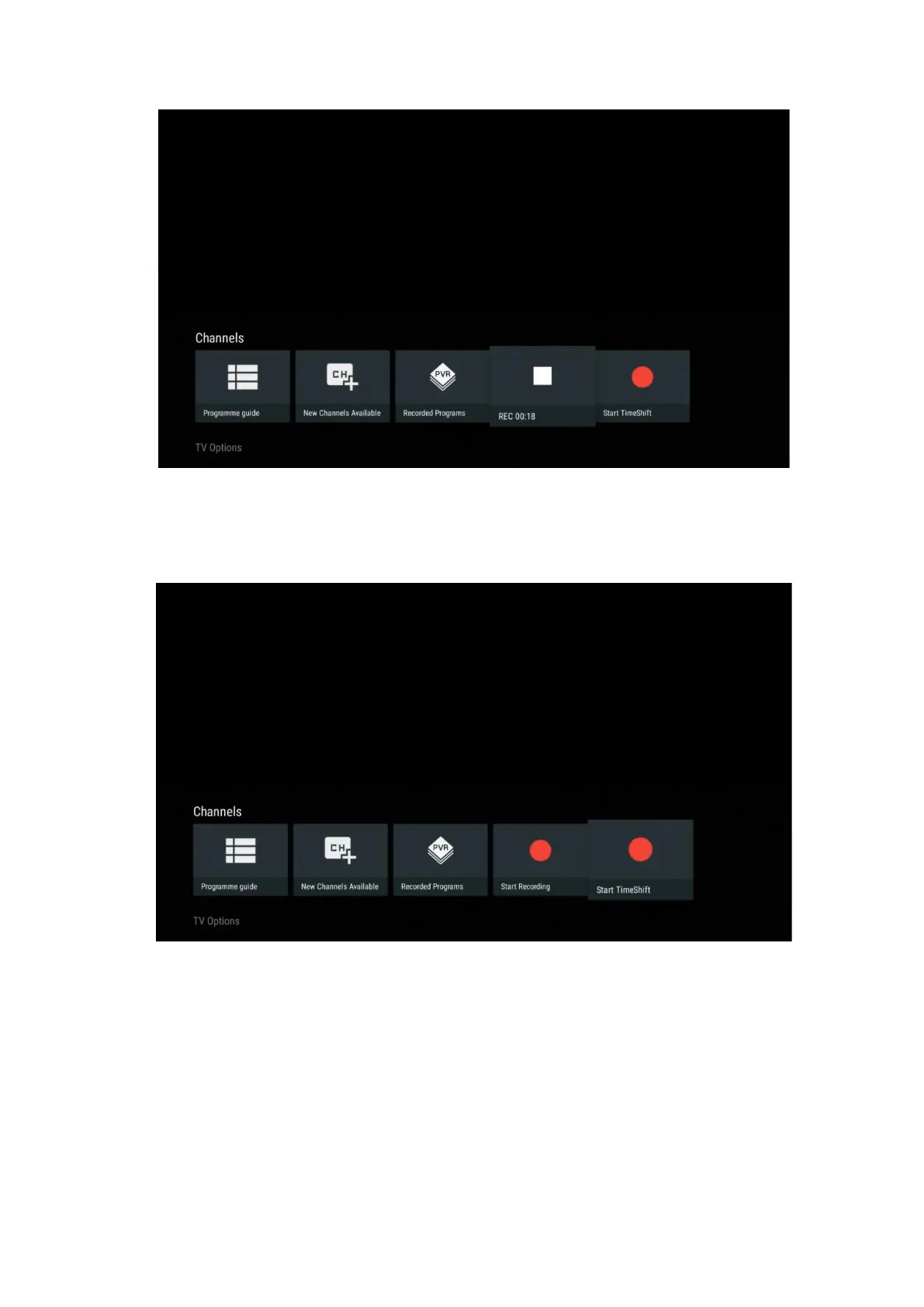Select the Pause symbol and press the OK button. The current TV programme will be paused. To