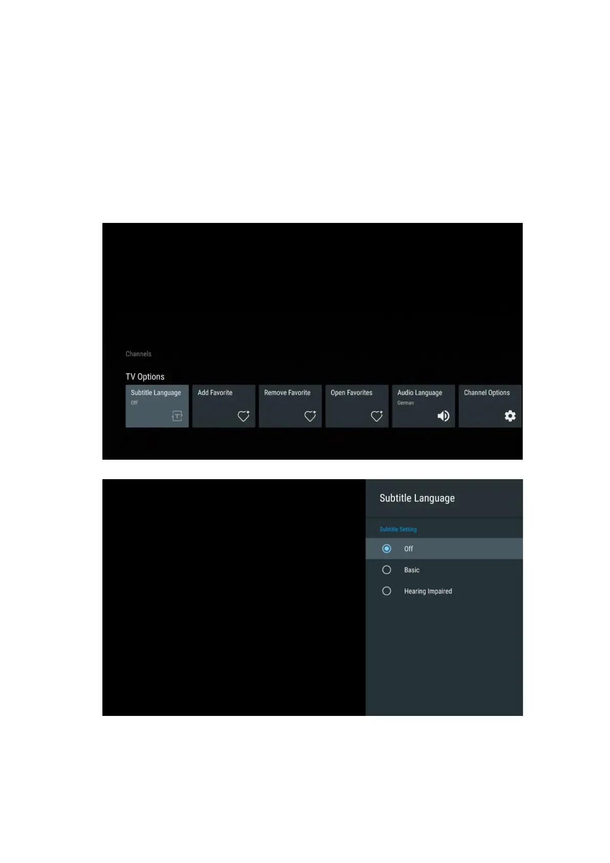 View the available subtitle options of the current TV program. Select your preferred option and