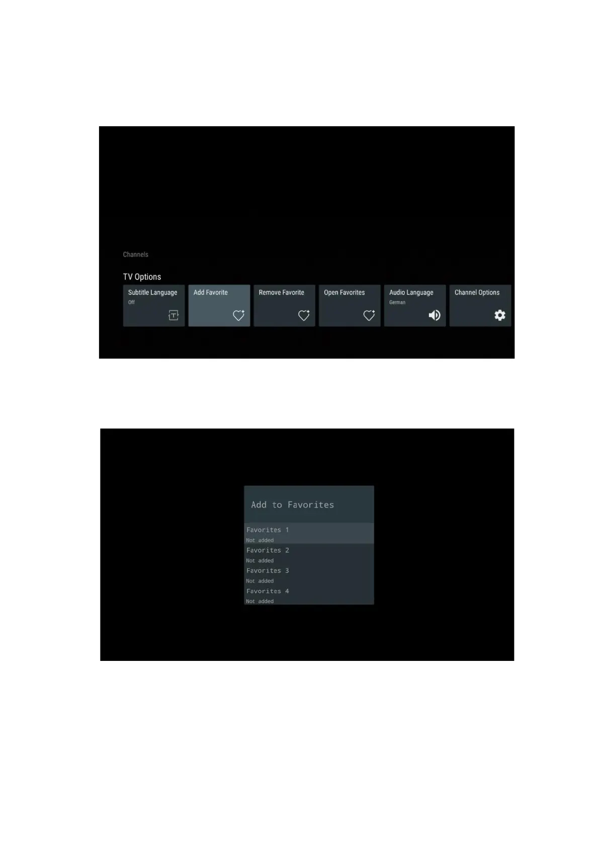 stored TV channels. In the general list, favorite channels will be marked with a heart symbol.