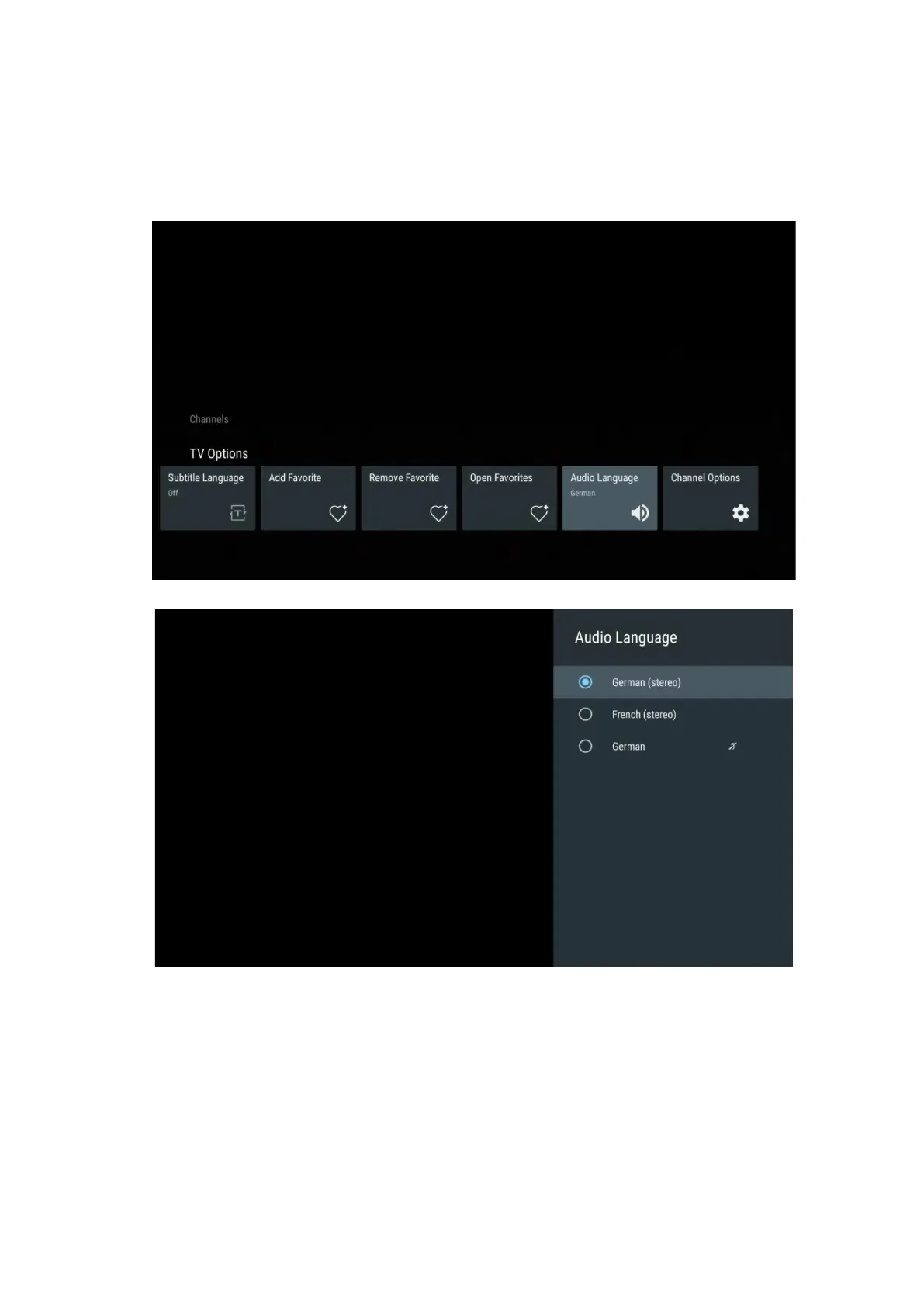 Some TV channels offer multiple audio languages. Select your preferred audio language in this