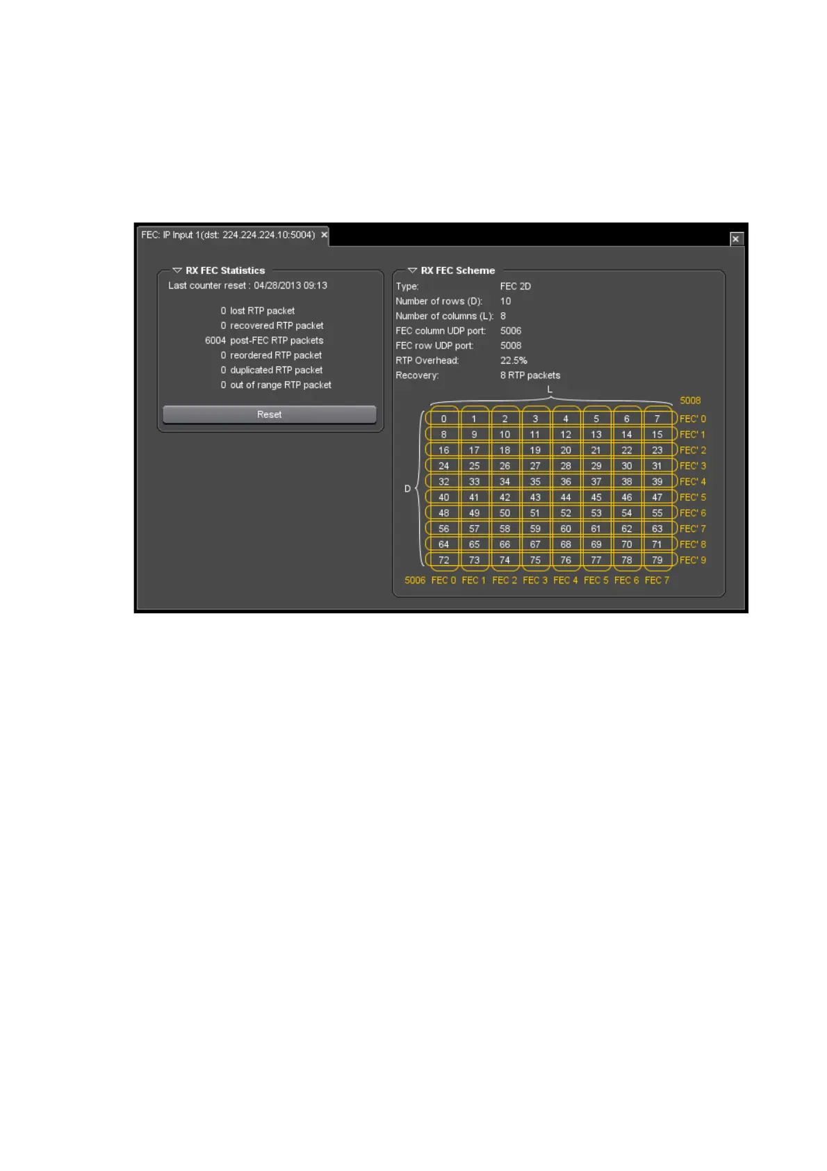 The FEC tab contains two area: RX FEC Statistics and RX FEC Scheme.