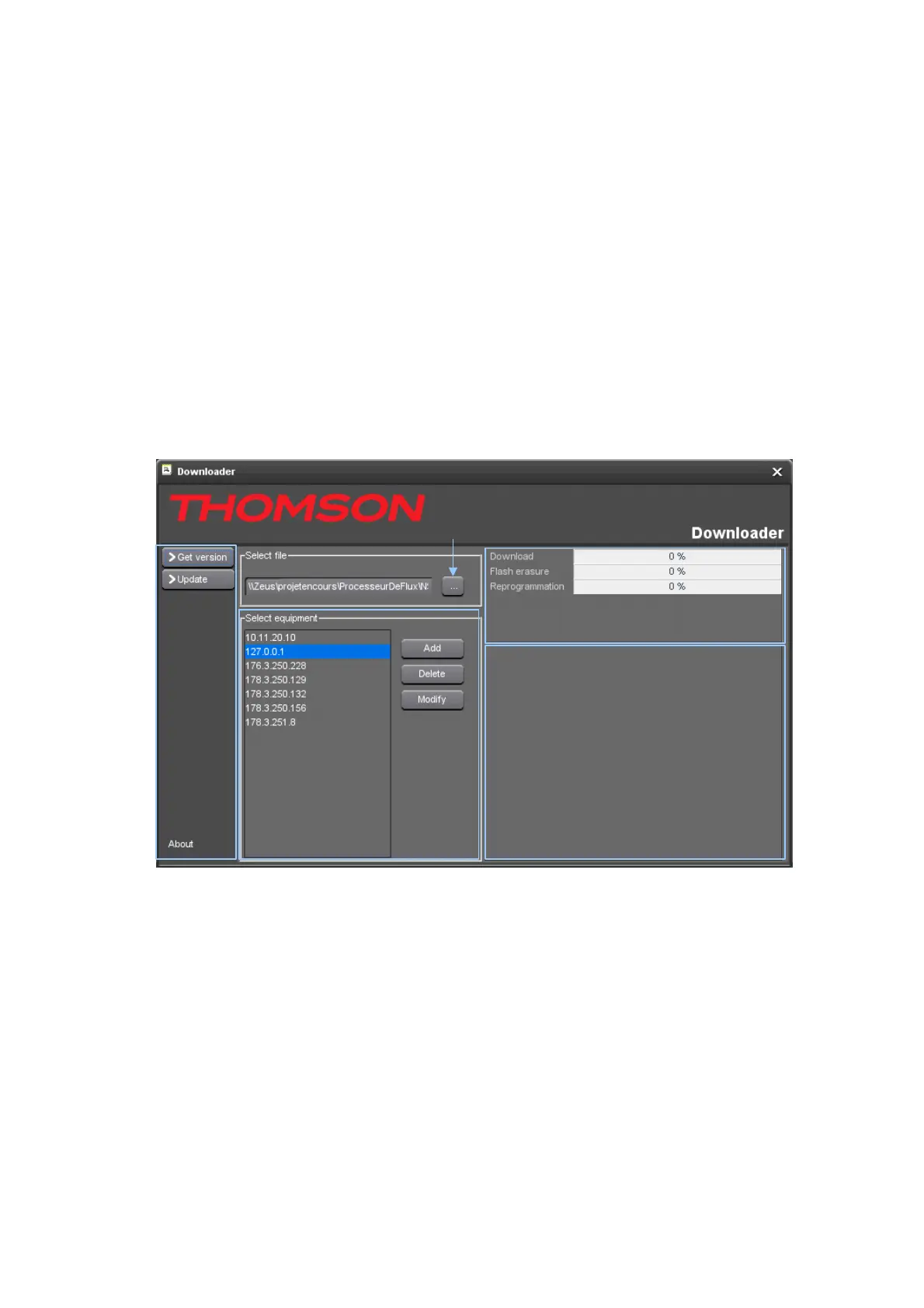 Select File panel: lets you select the file to be downloaded (".trf" file).