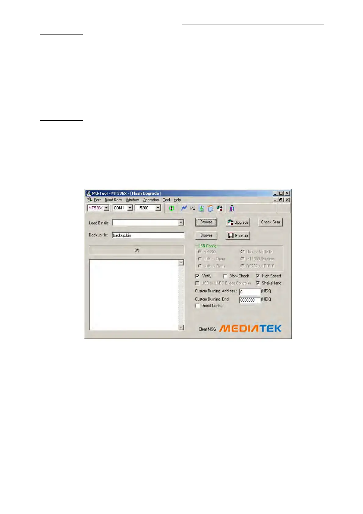 3. Start “MTKTOOL.exe” application under MTKxx folder, and set the parameters as below