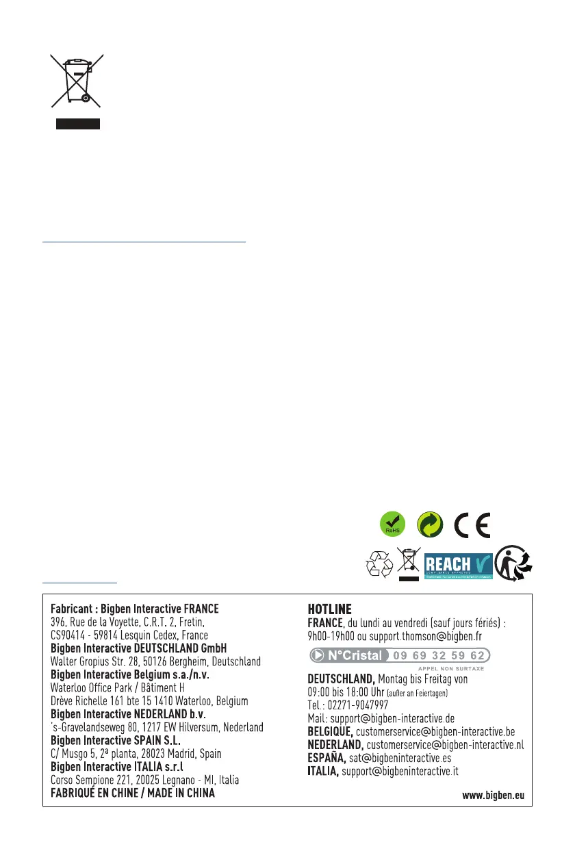 Hiermit erklärt Bigben Interactive, dass das Produkt CR50DAB der Richtlinie 2014/53/EU entspricht.