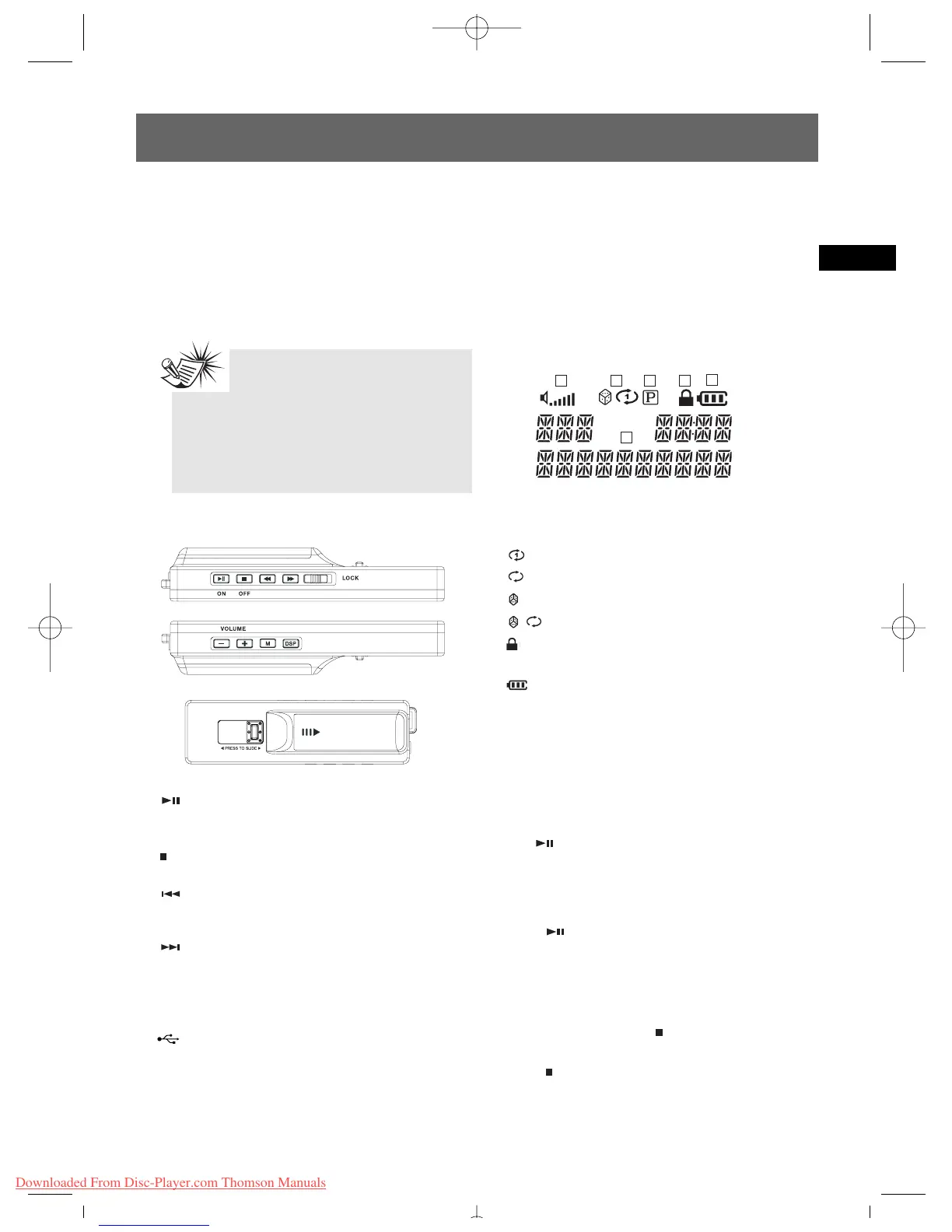 • Press in stop mode to turn the unit off.