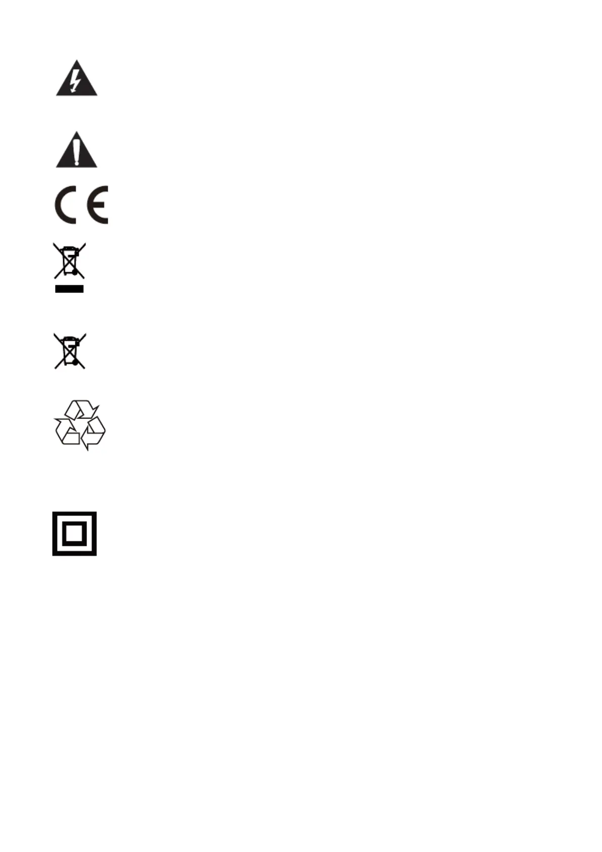 Dieses Symbol bedeutet, dass das Gerät doppelt isoliert ist. Eine Erdung ist nicht erforderlich.