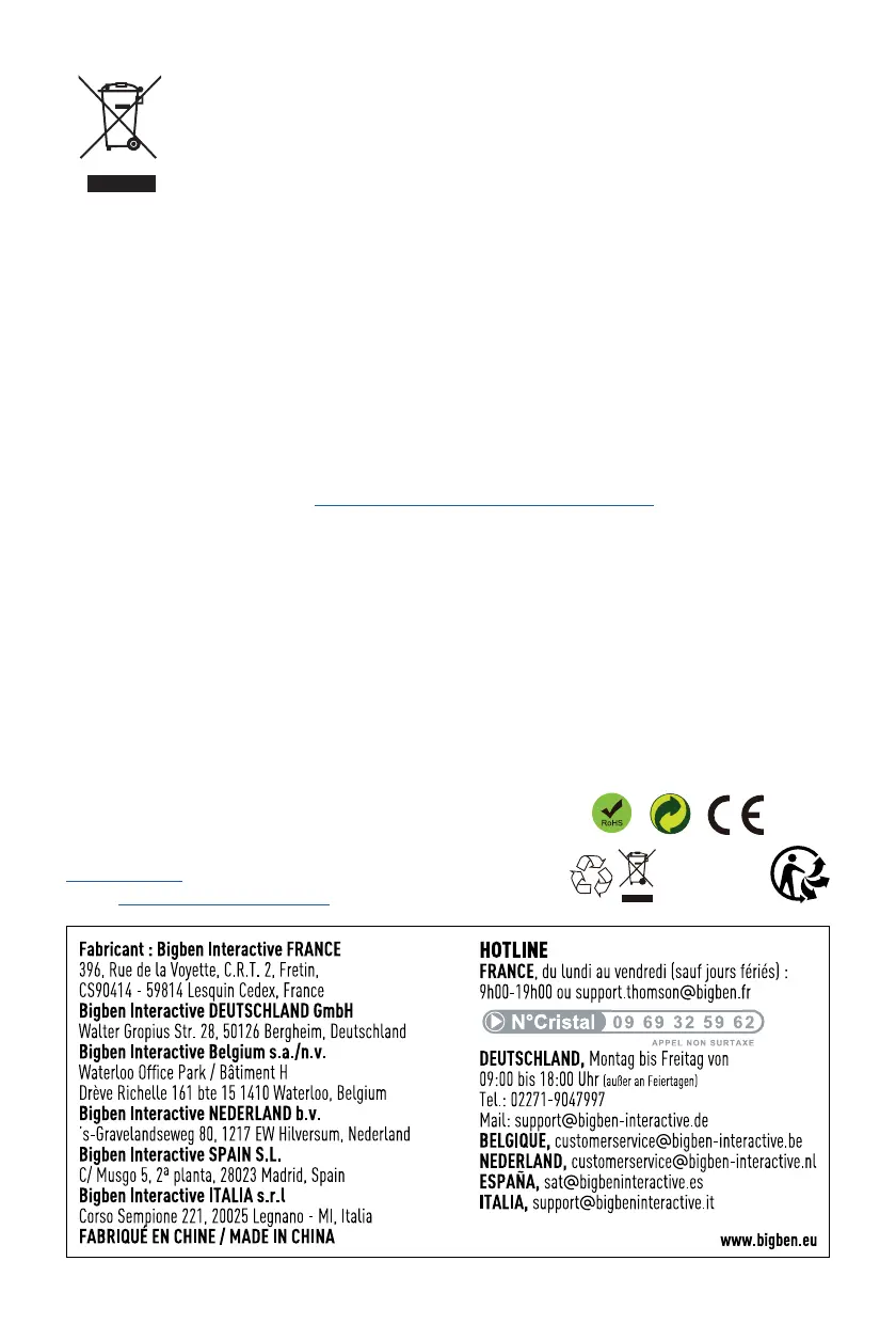 • THOMSON is a trademark of TECHNICOLOR SA or its aliates used under license to Bigben