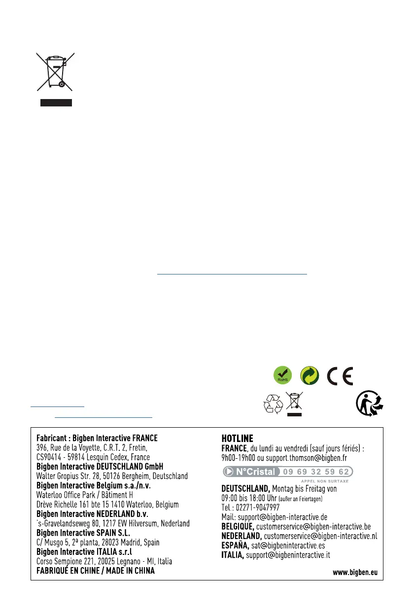 Niżej podpisany oświadcza w imieniu Bigben Interactive, że urządzenie radiowe typu CT500BT jest