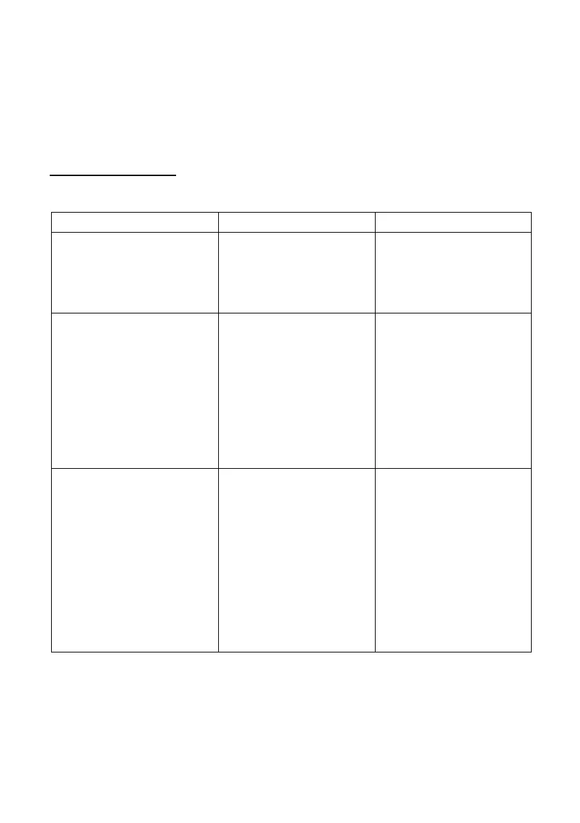 Bei Fehlfunktion, schauen Sie bitte in die folgende Tabelle