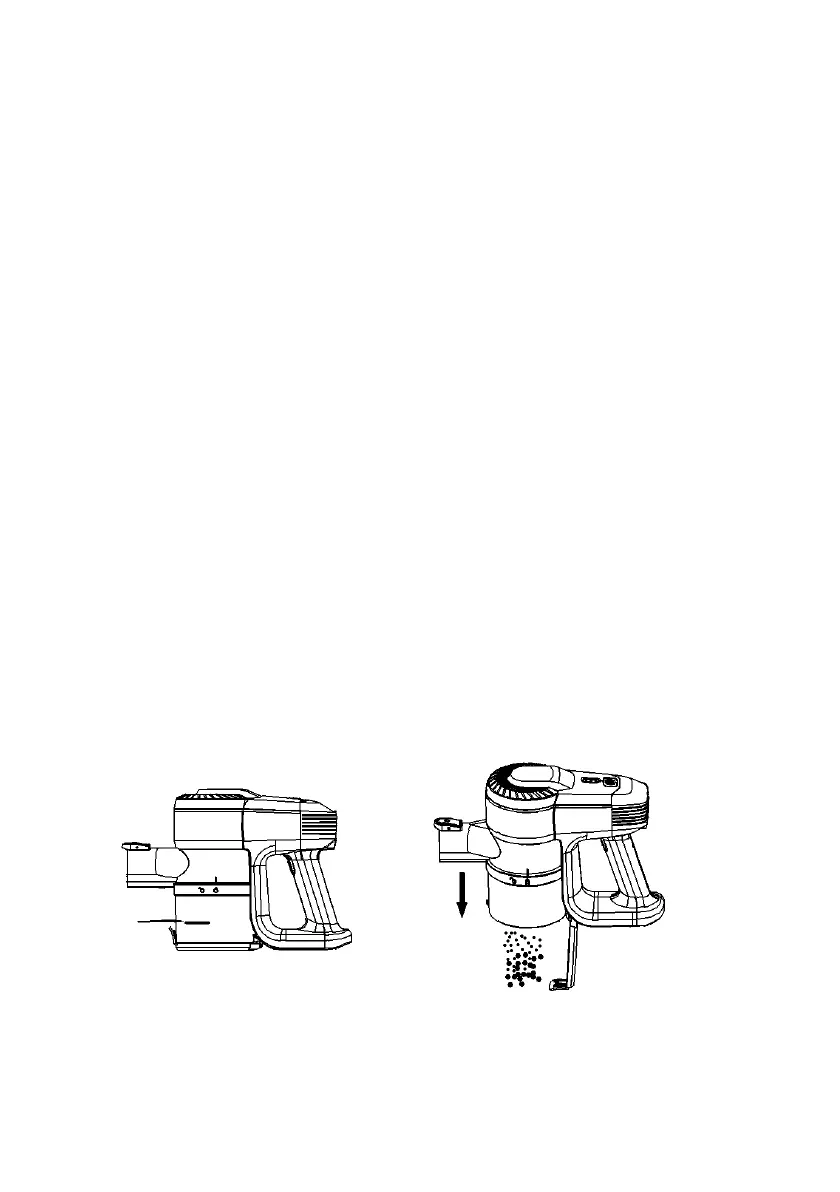 para liberar la tapa del depósito de polvo inferior para vaciar el