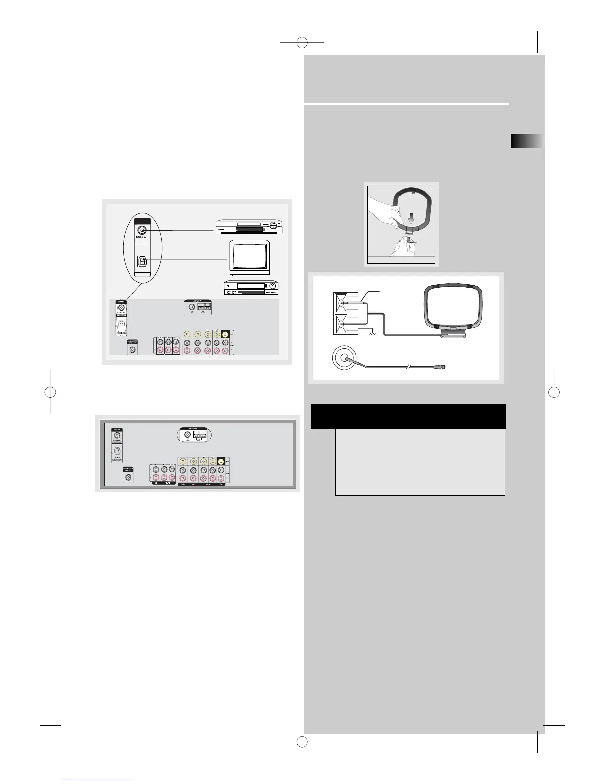 The AM and FM antennas connect to the AM and FM