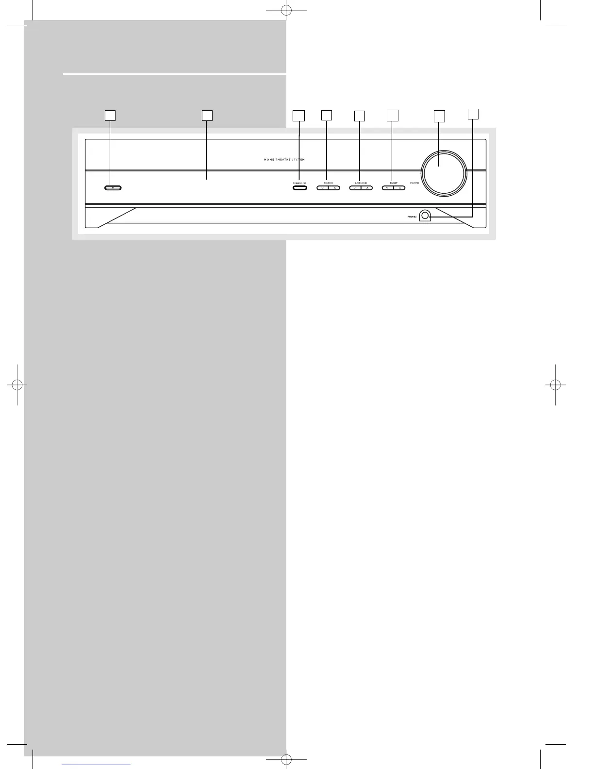 Selects sound source. (DVD, Tuner, Tape, VCR, CD, TV