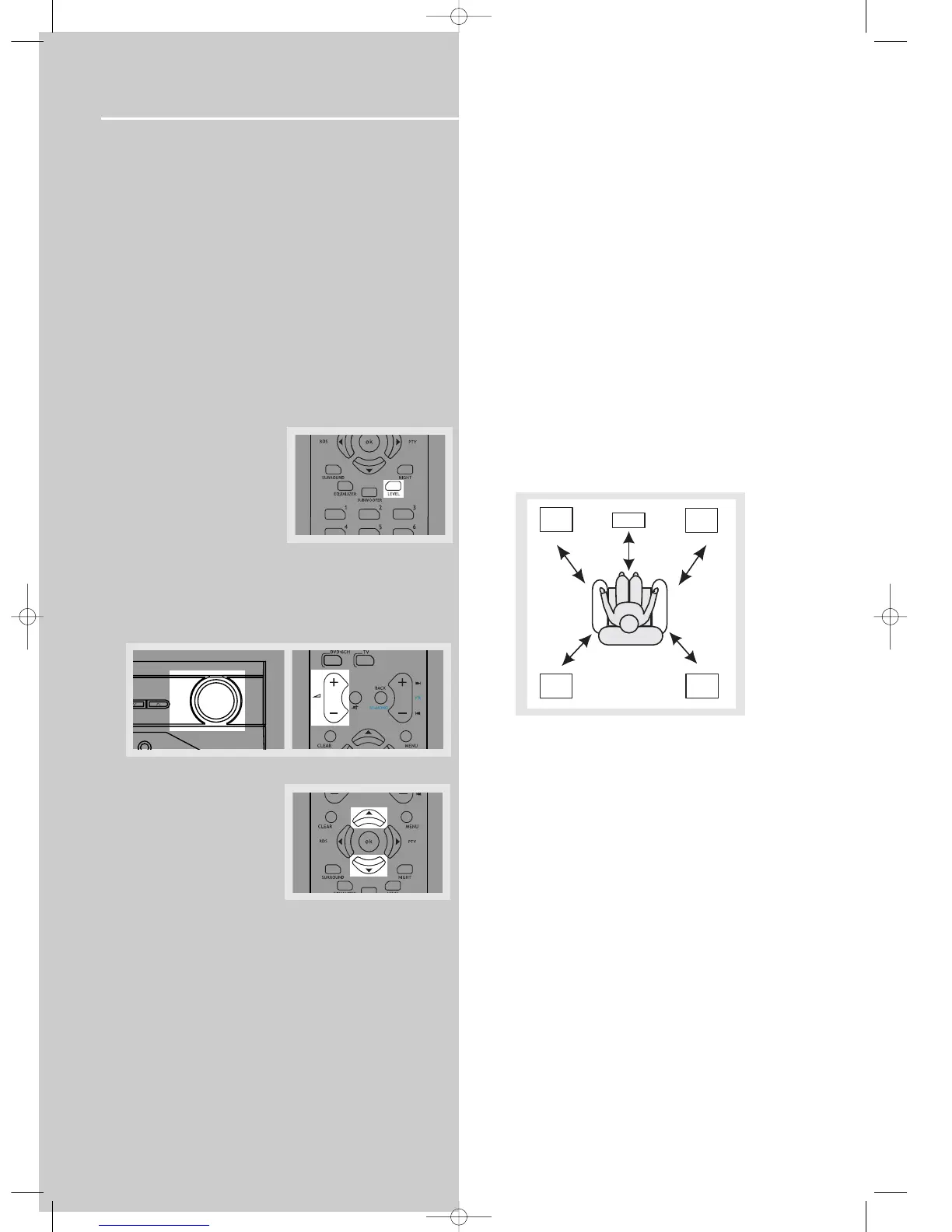 1. To adjust individual speaker volume level, press the