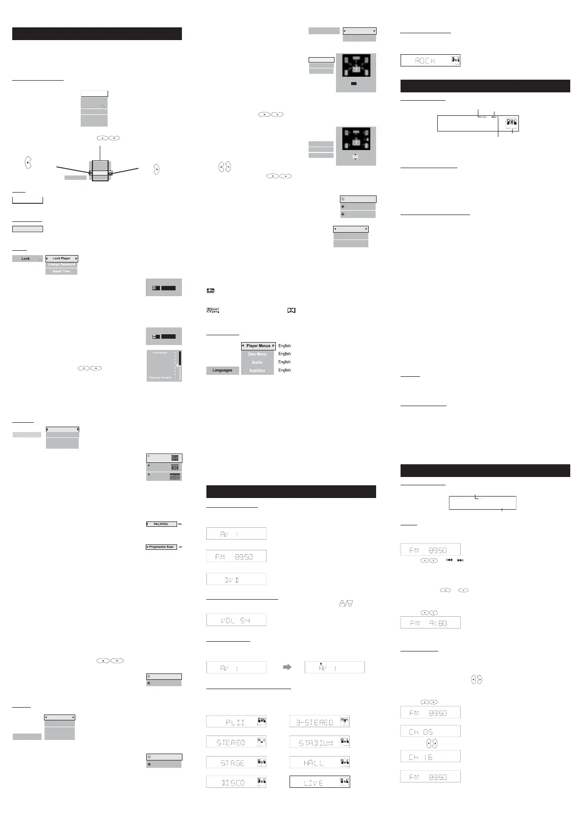 Select among the 7 languages as default language for player menus. Press