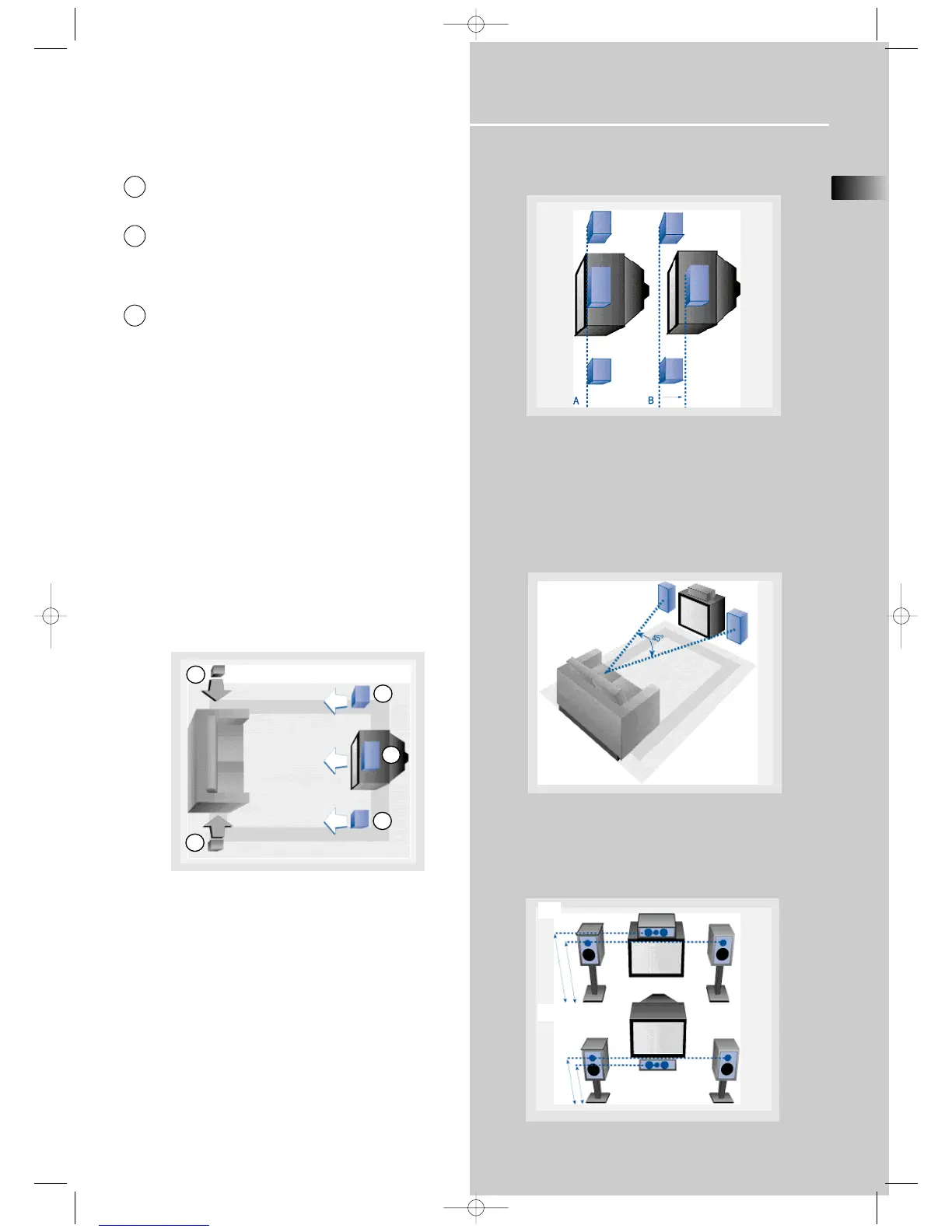 Placing the left and right speakers to form a 45-degree