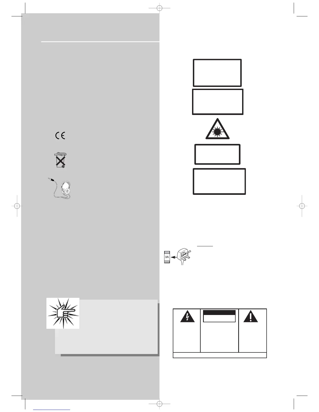 Note; The mains lead of the set is fitted with a molded