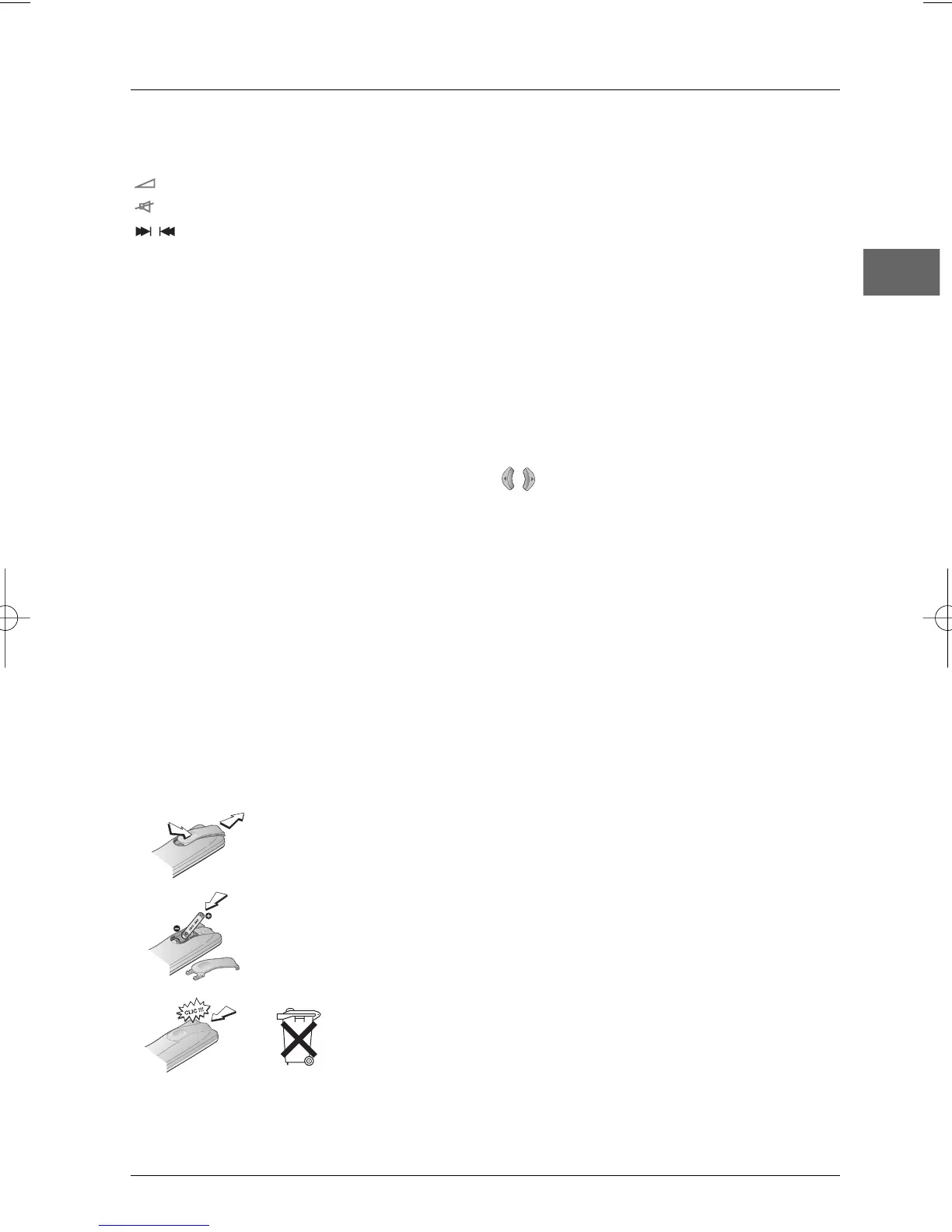 • If you are not using the remote control for a long period of time, remove the batteries.