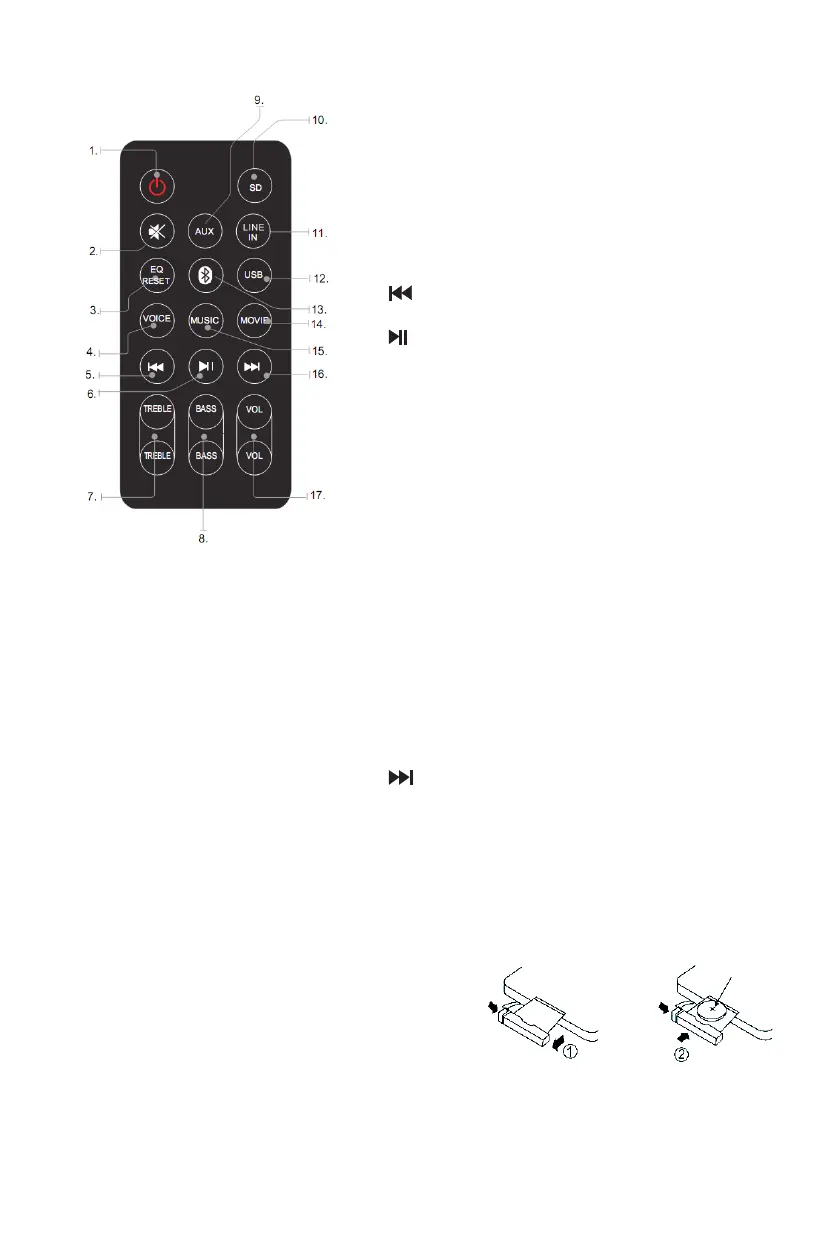 • Duw de batterijhouder vervolgens opnieuw in de afstandsbediening totdat u een “klik” hoort.