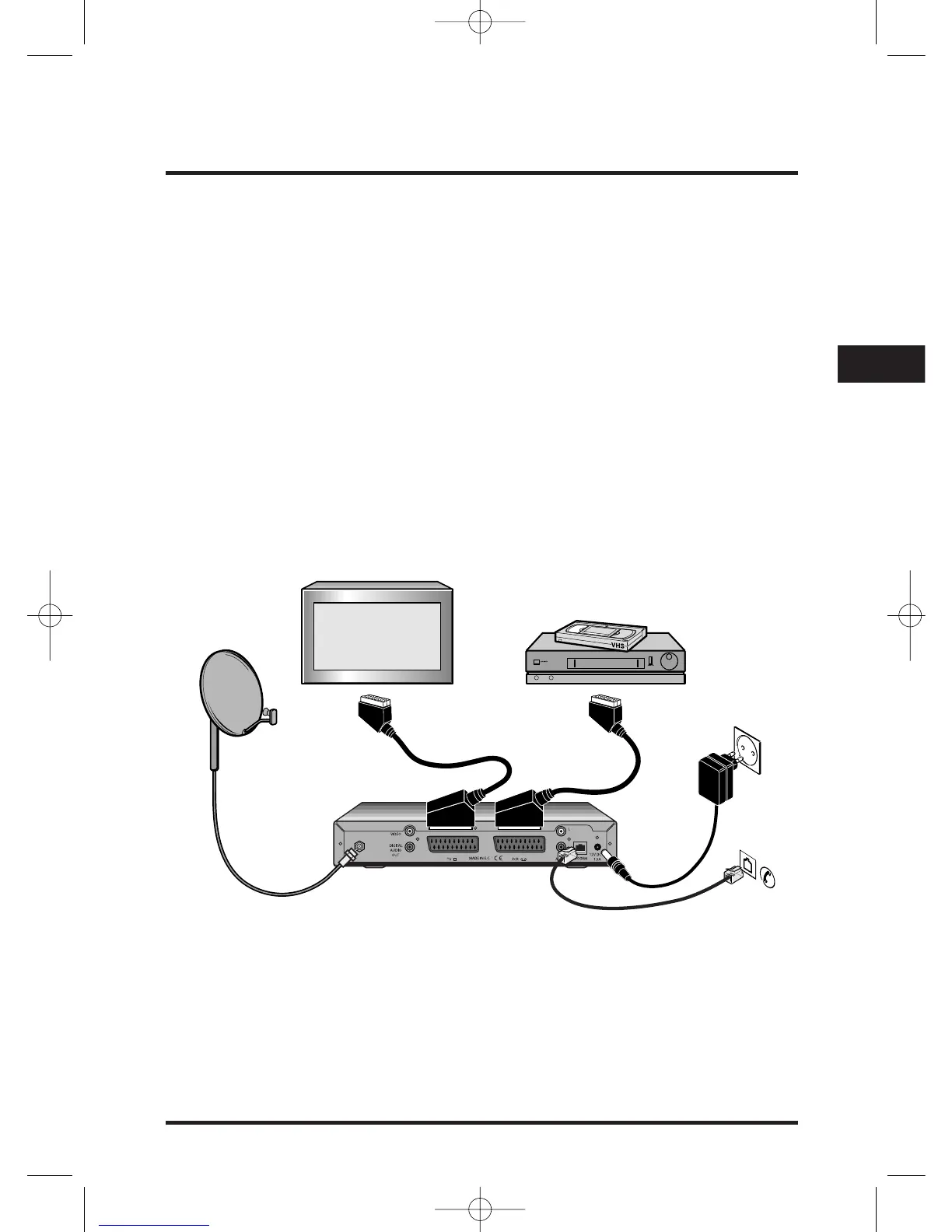 1. Brug den medfølgende SCART-ledning til at tilslutte satellitmodtageren til tv'ets