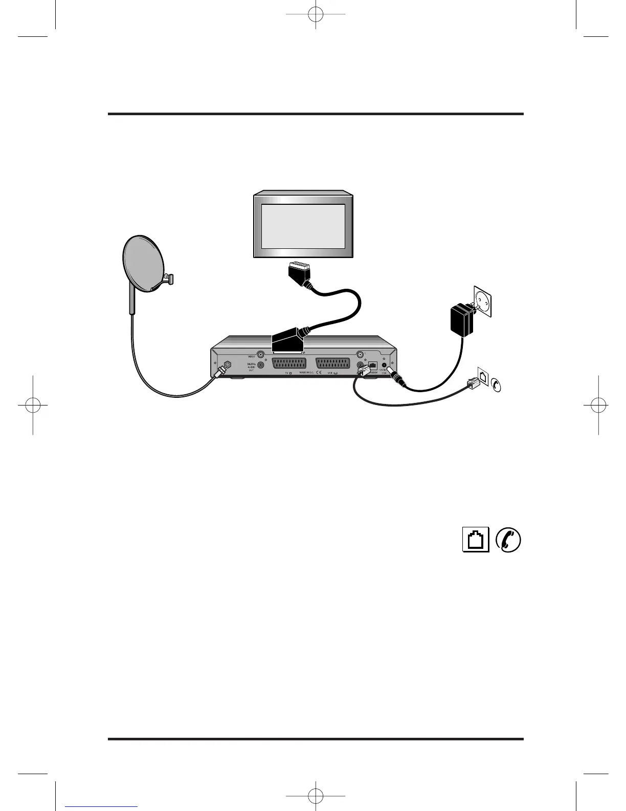 Der leveres telefonlinjeadaptere, som kan bruges lokalt, med satellitmodtageren.