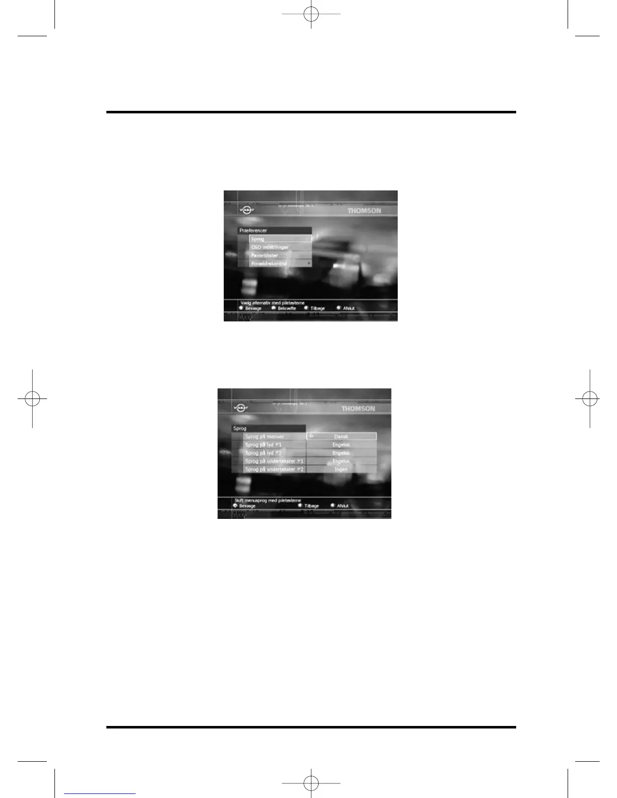 Her kan du vælge det ønskede sprog til menuer og til lyd samt undertekster, hvis
