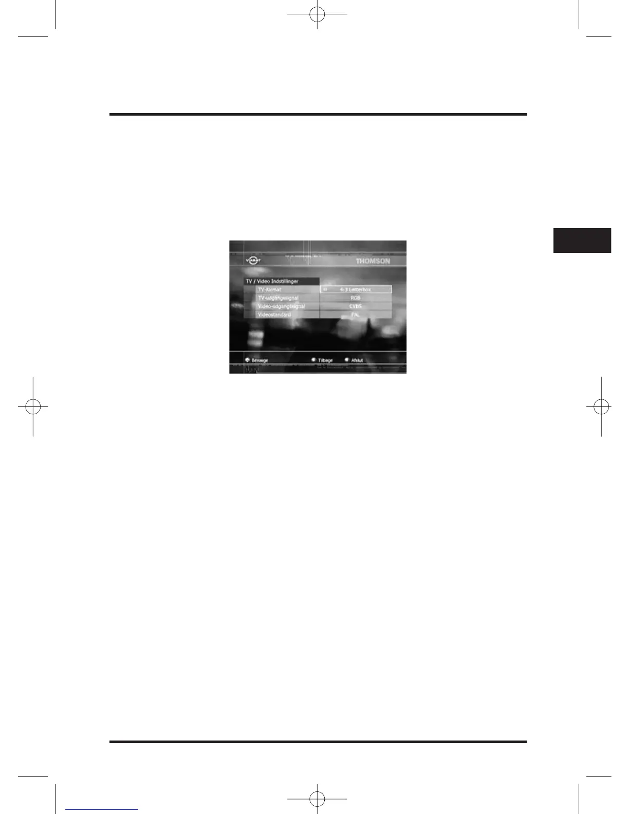 - TV-format: Indtast tv-formatet til 4:3 Letterbox, 16:9 eller 4:3 Pan og Scan med