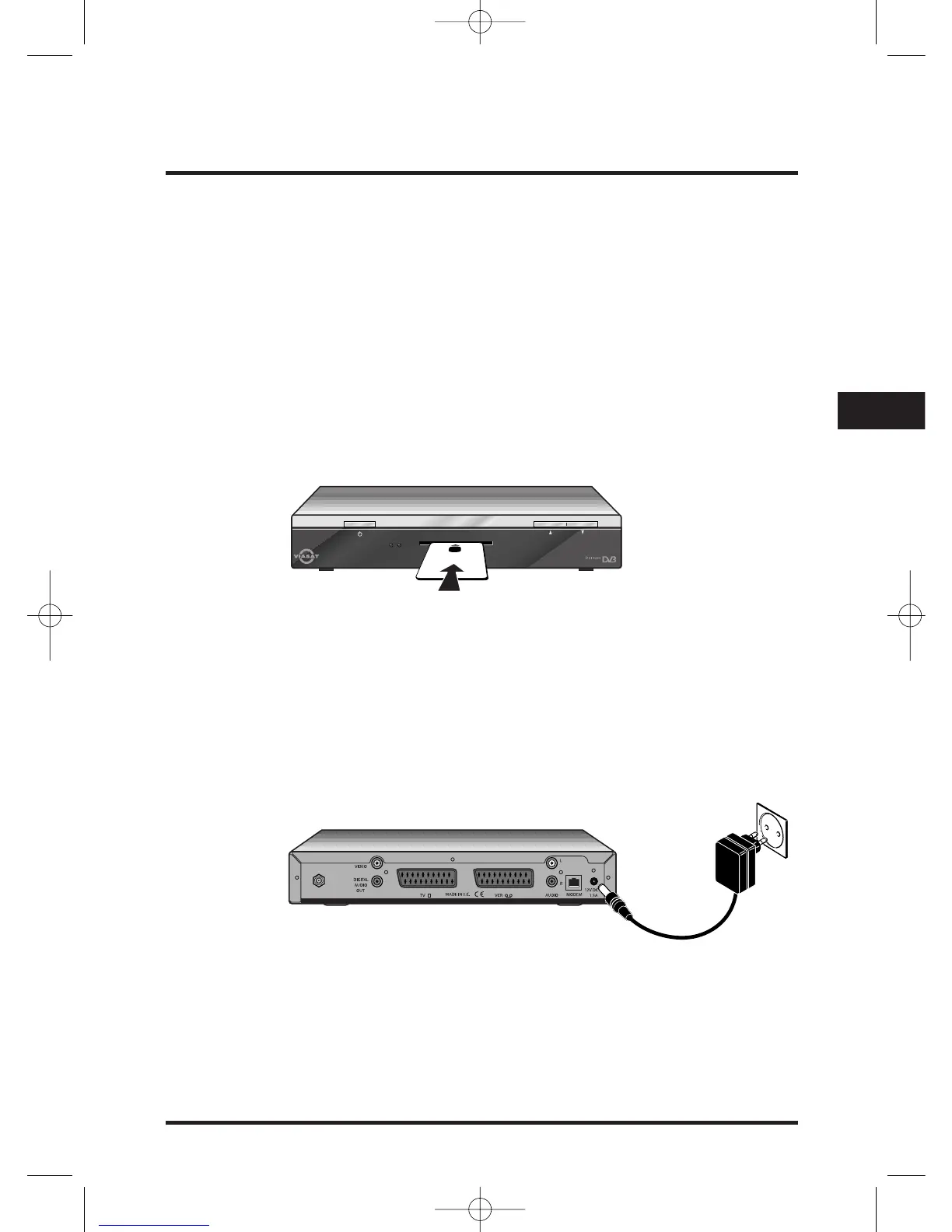alla olevan kuvan mukaisesti satelliittivastaanottimen vastaavaan pistorasiaan.