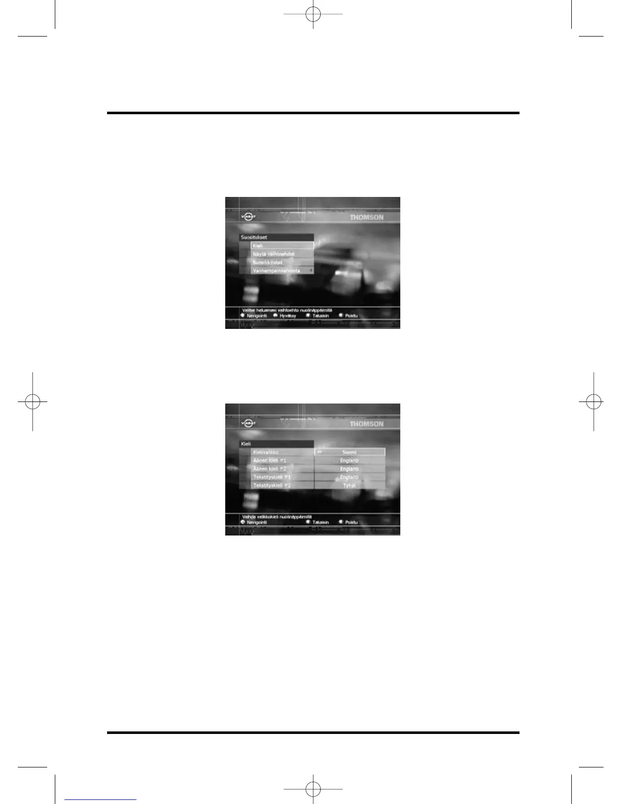 Paina EXIT ja poistu valikosta tai paina BACK palaten Suositukset valikkoon.