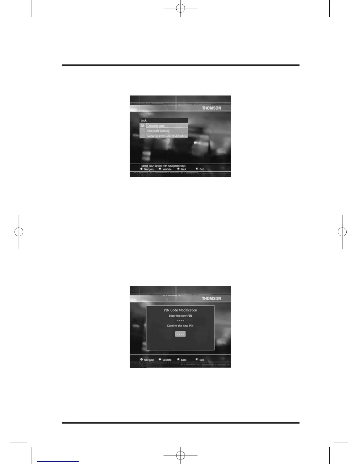 This menu allows you to modify the PIN code of your decoder.