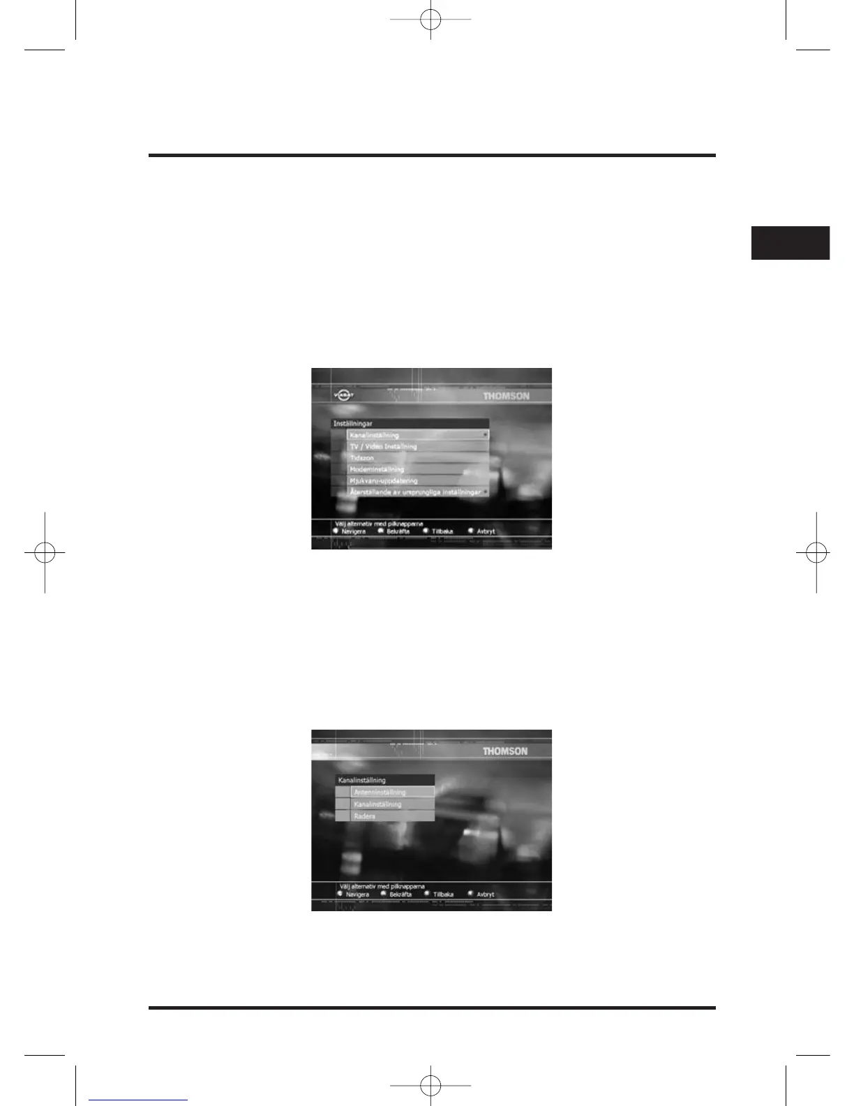 Denna meny gör det möjligt för dig att utföra ytterligare Kanalinstallation, att göra TV-/VCR-
