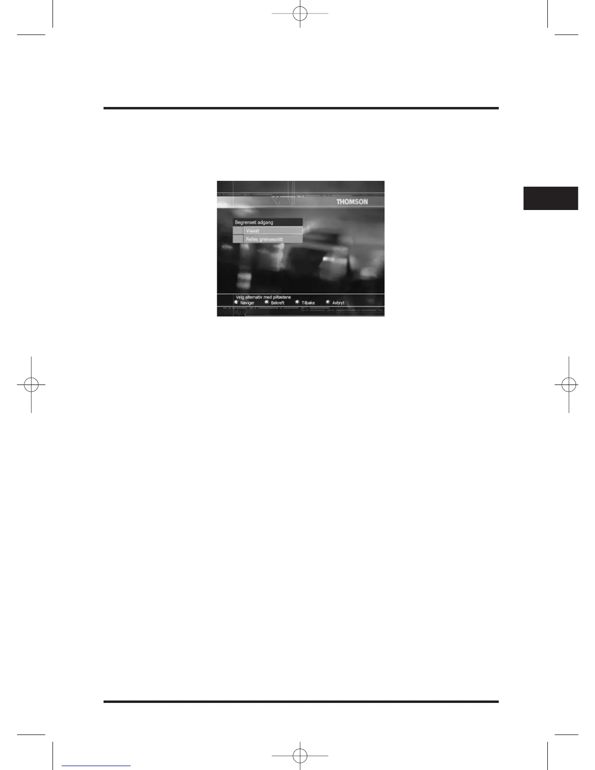 Trykk BACK for å gå tilbake til Begrenset adgang menyen eller trykk på EXIT for å