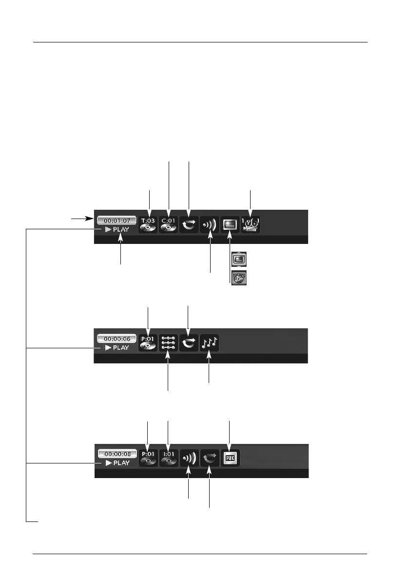 chapter, a title or a track depending on the disc being played (when the corresponding T, C,