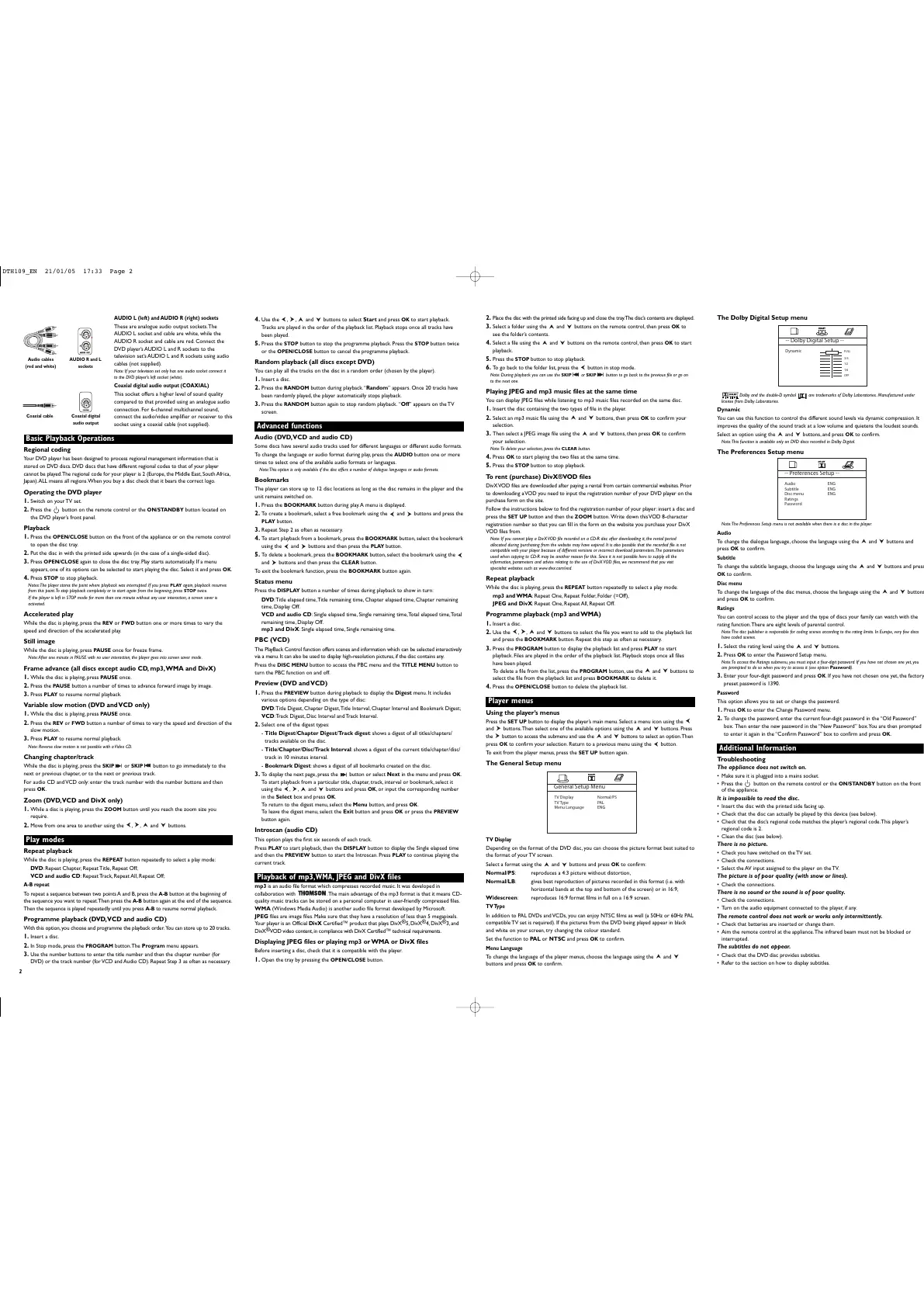 In addition to PAL DVDs and VCDs, you can enjoy NTSC films as well (a 50Hz or 60Hz PAL