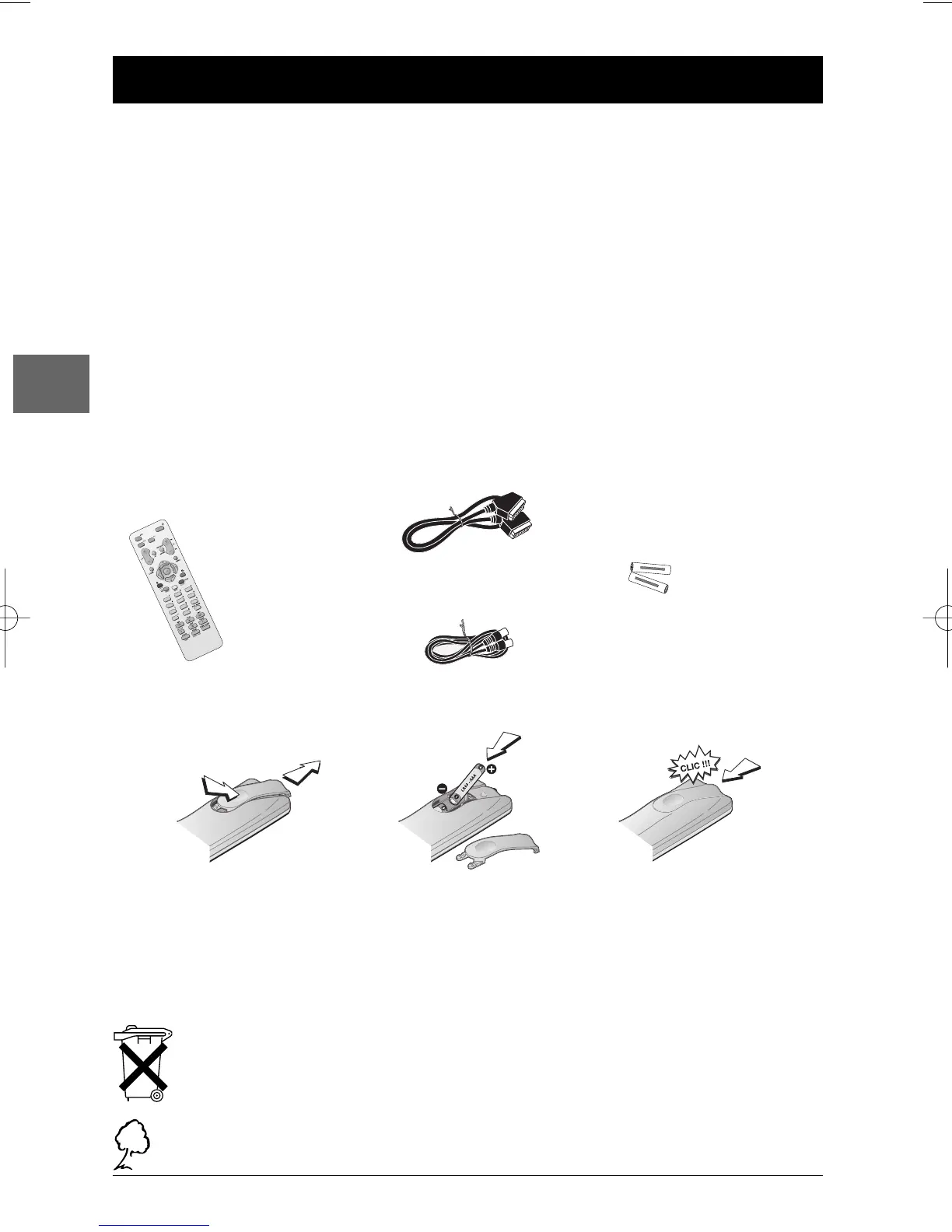 • If you are not using the remote control for a long period of time, remove the batteries.
