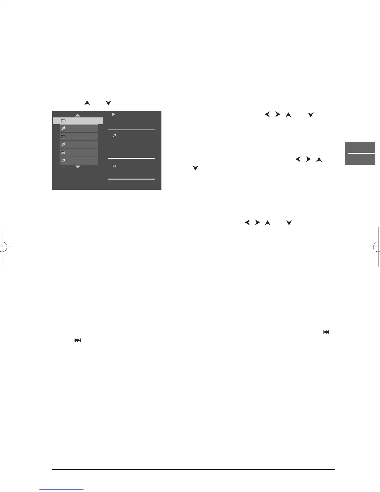 Note:You can also select a folder containing JPEG and mp3 files using the , , and buttons, then