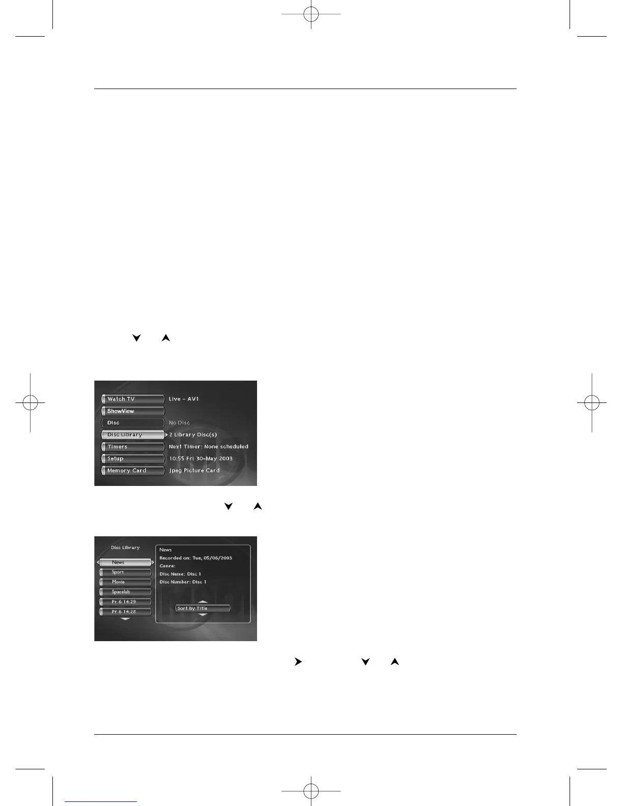 (DVD+R or +RW discs only). In order to help you to find a title, the library also has sorting functions to assist