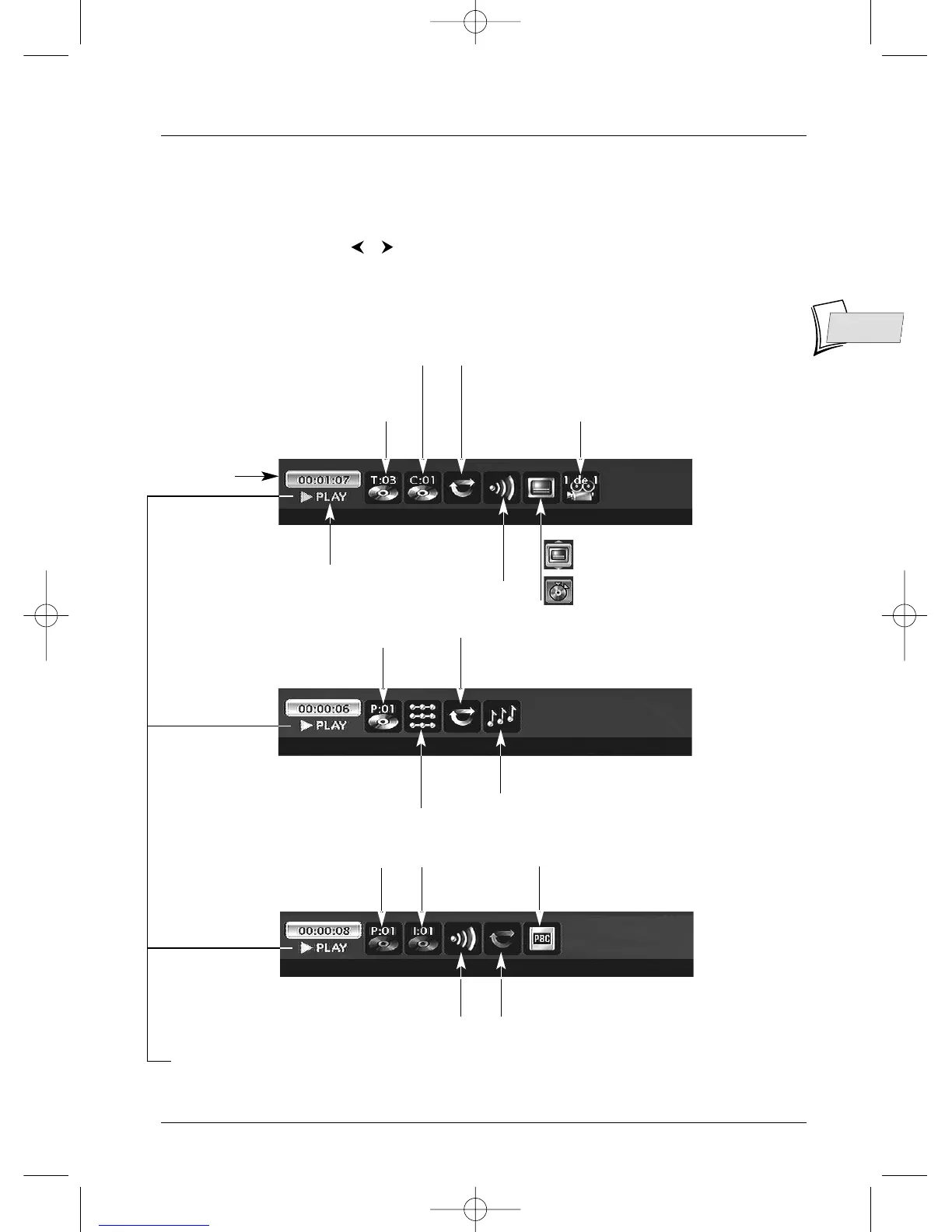 a chapter, a title or a track depending on the disc being played (when the corresponding T, C,