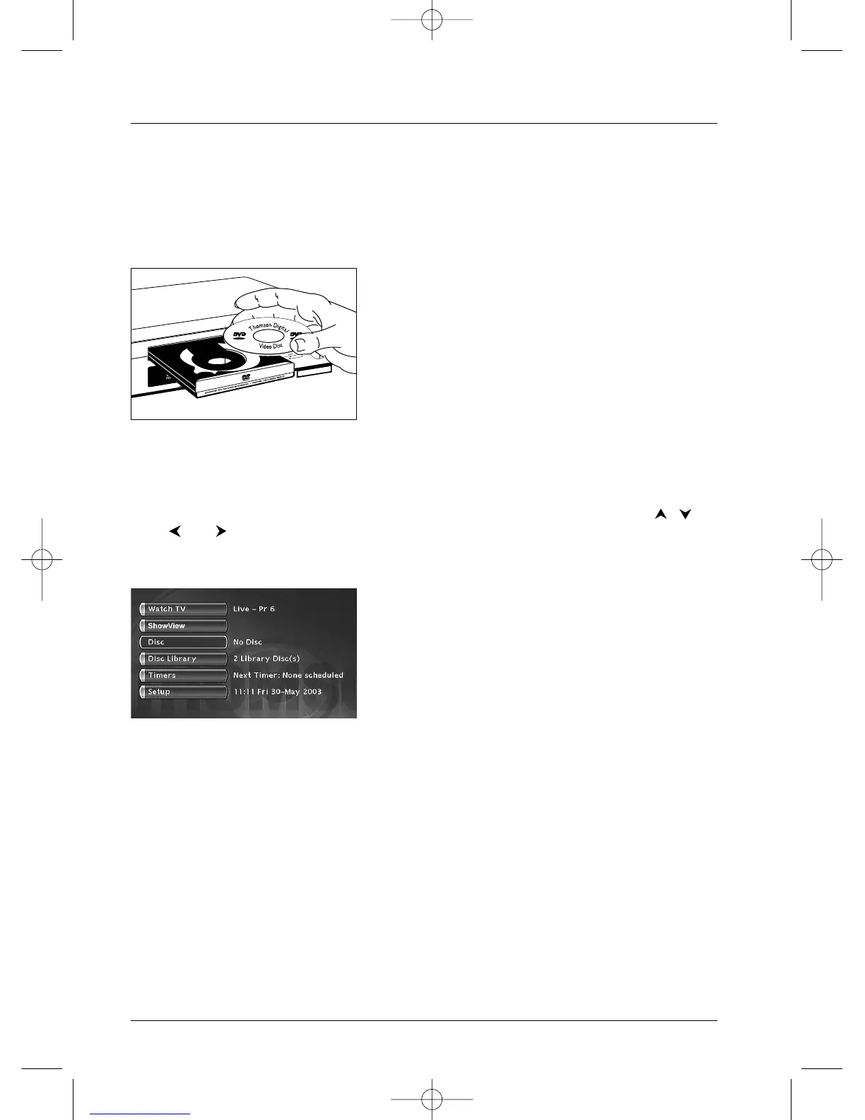 • in the Main Menu Disc is highlighted. Press once or twice on PLAY to access the disc’s