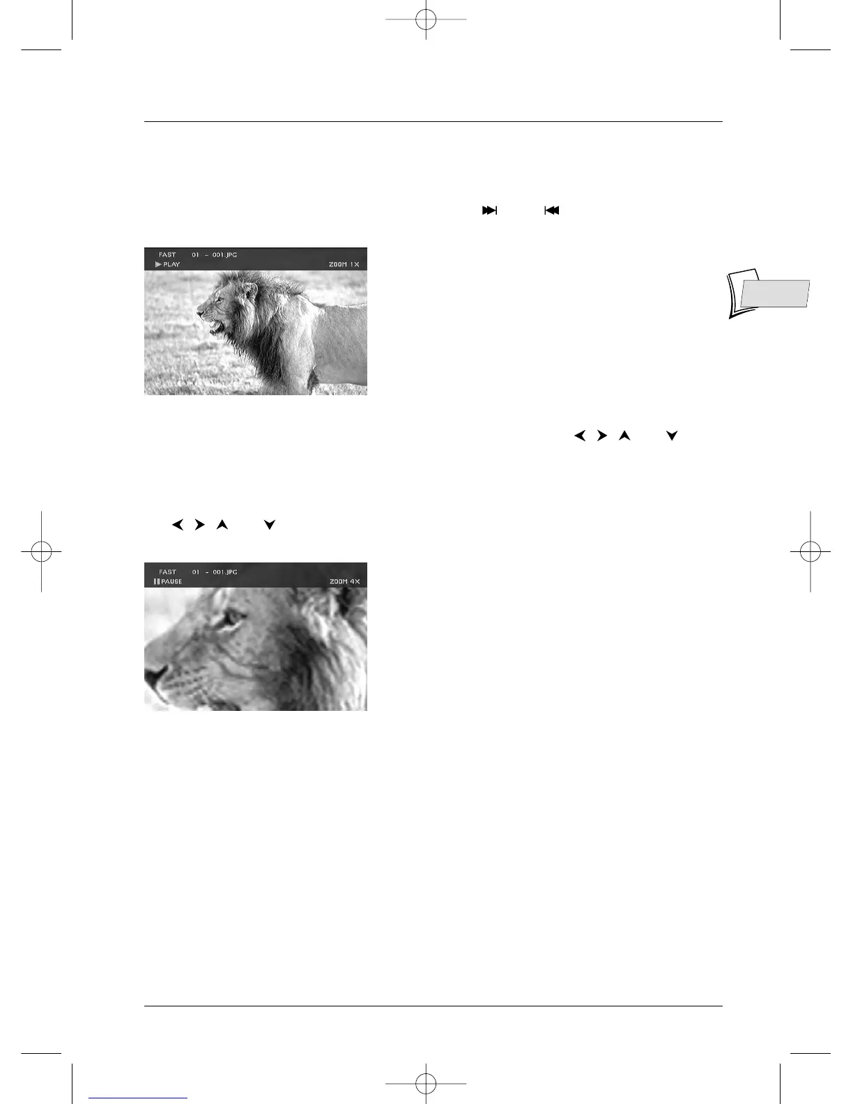 To see more detail, press once or several times on the ZOOM key to enlarge the image and use