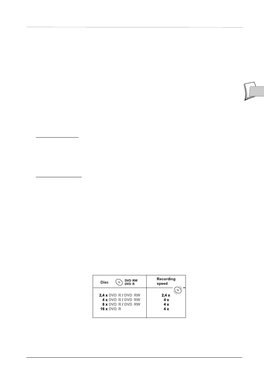 The DVD discs are certified for certain recording speeds.These speeds must correspond to the