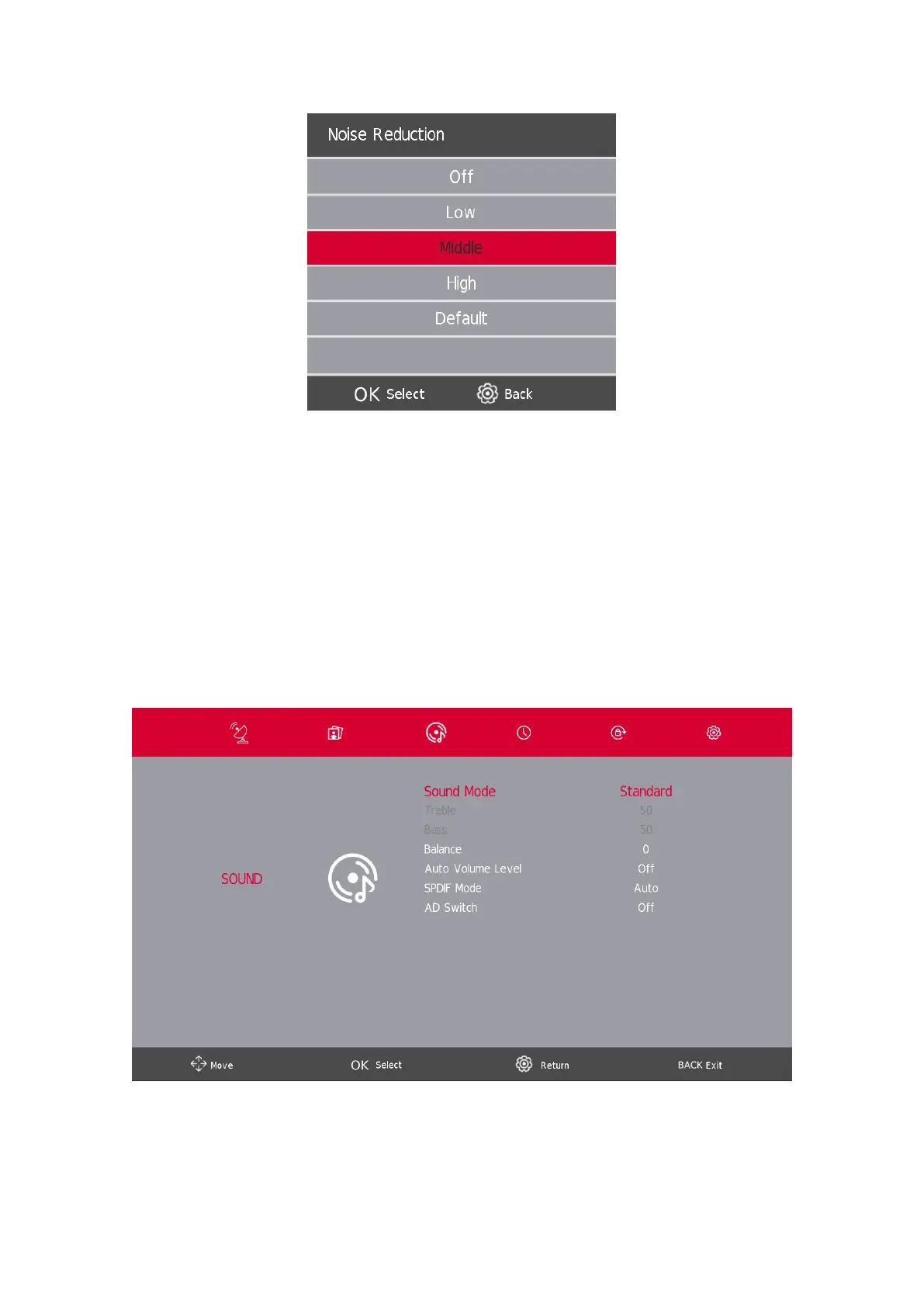 Noise Reduction, then press the OK button to enter sub-menu.