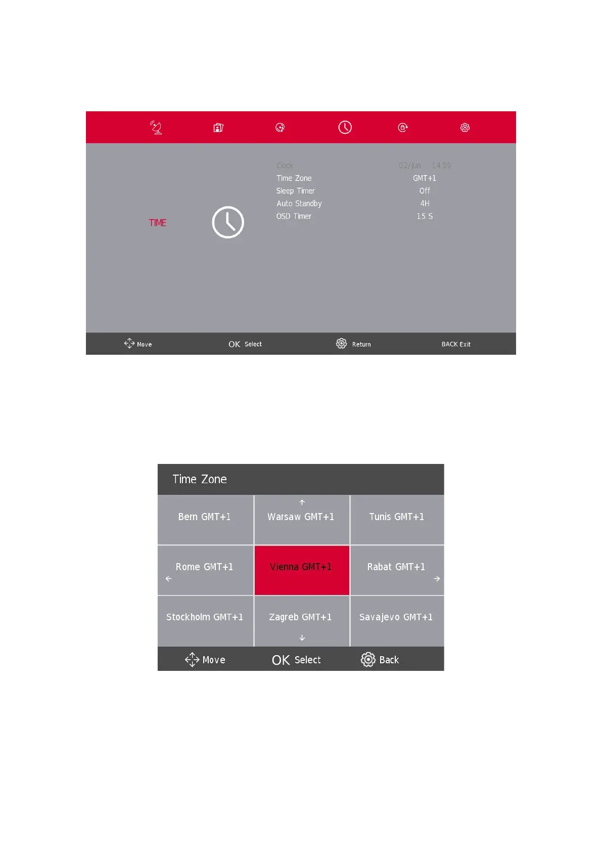 Press the s / w button to select Time Zone, then press the OK/ENTER button to enter sub-menu.