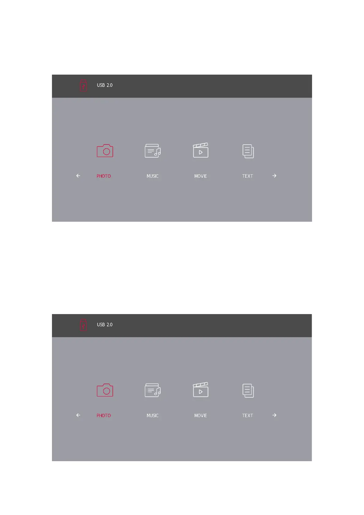 Note: Before operating Media menu, plug in the USB device, then press the Source button to set the Input