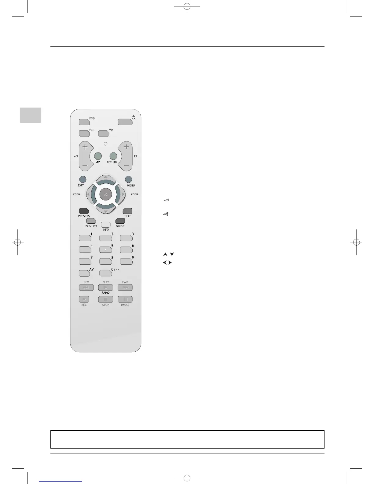 If the batteries in your remote control are run down, you can use the buttons on the front of your set, as they have the same functions as those