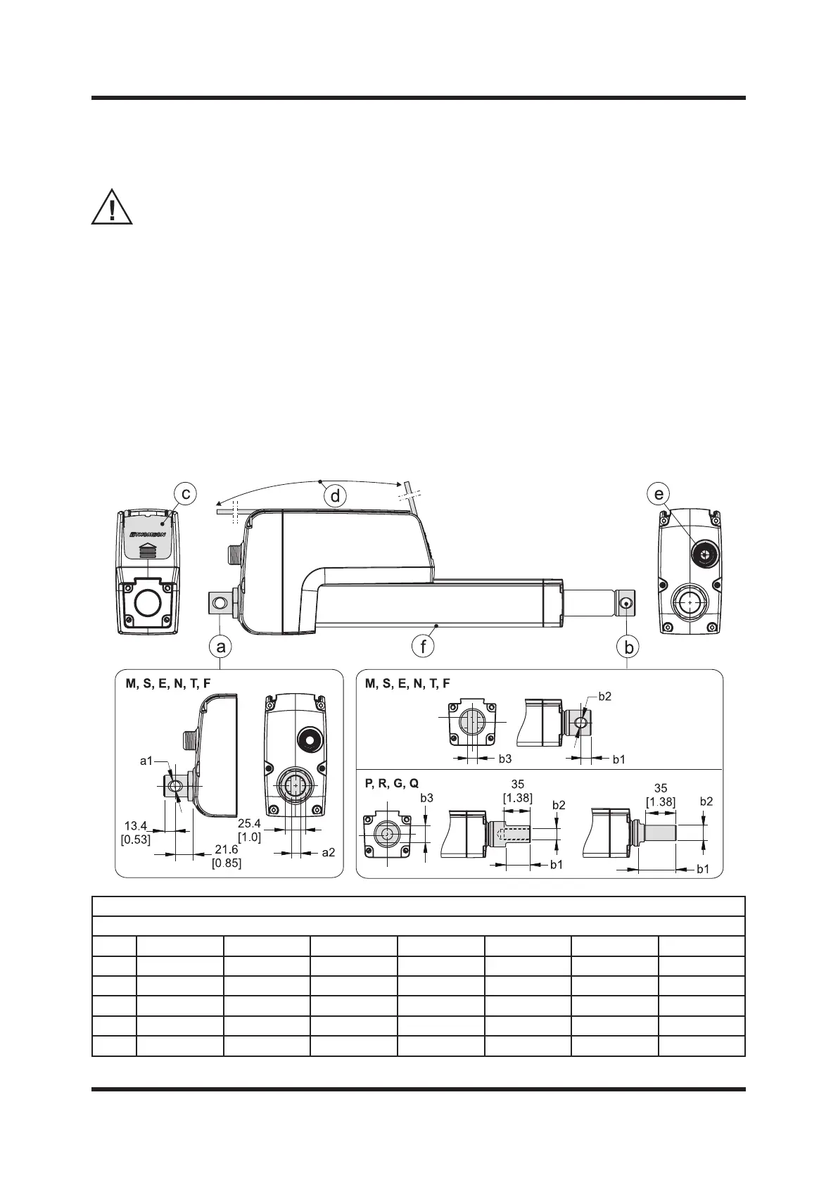 1. Only mount the actuator using the holes in the rear (a) and front (b) adapters. Check the model